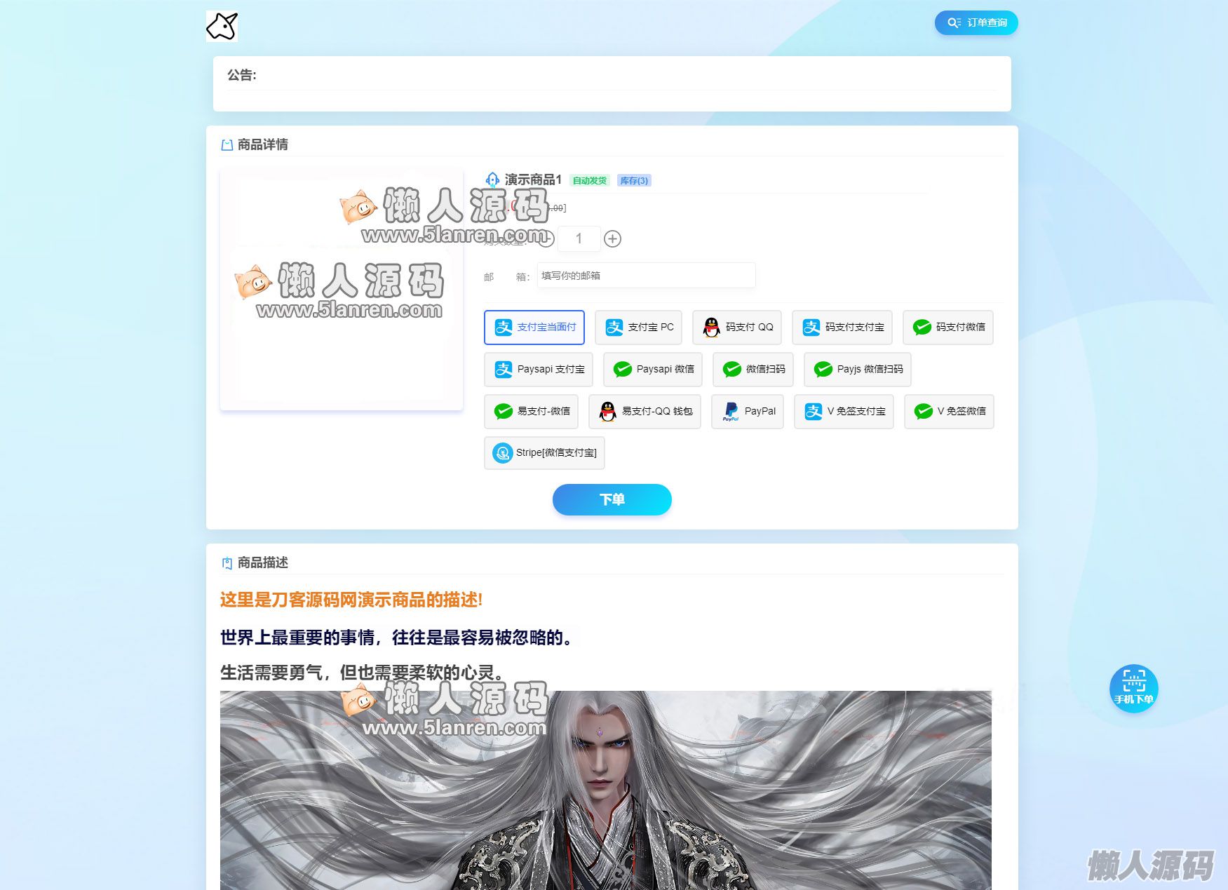 附带多模板 简约大气 很适合个人 自动发卡 所使用