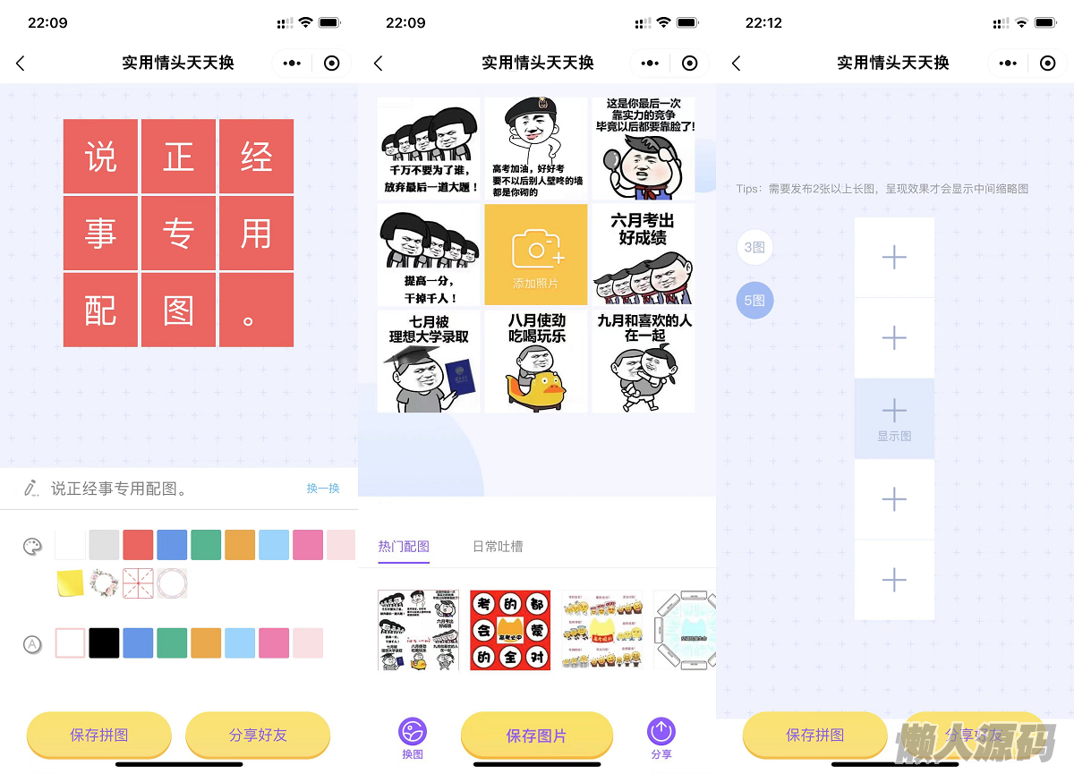 主要功能有文字九格、头像挂件生成、爆趣九宫格、形状九宫格、创意长图、头像、猫流器。