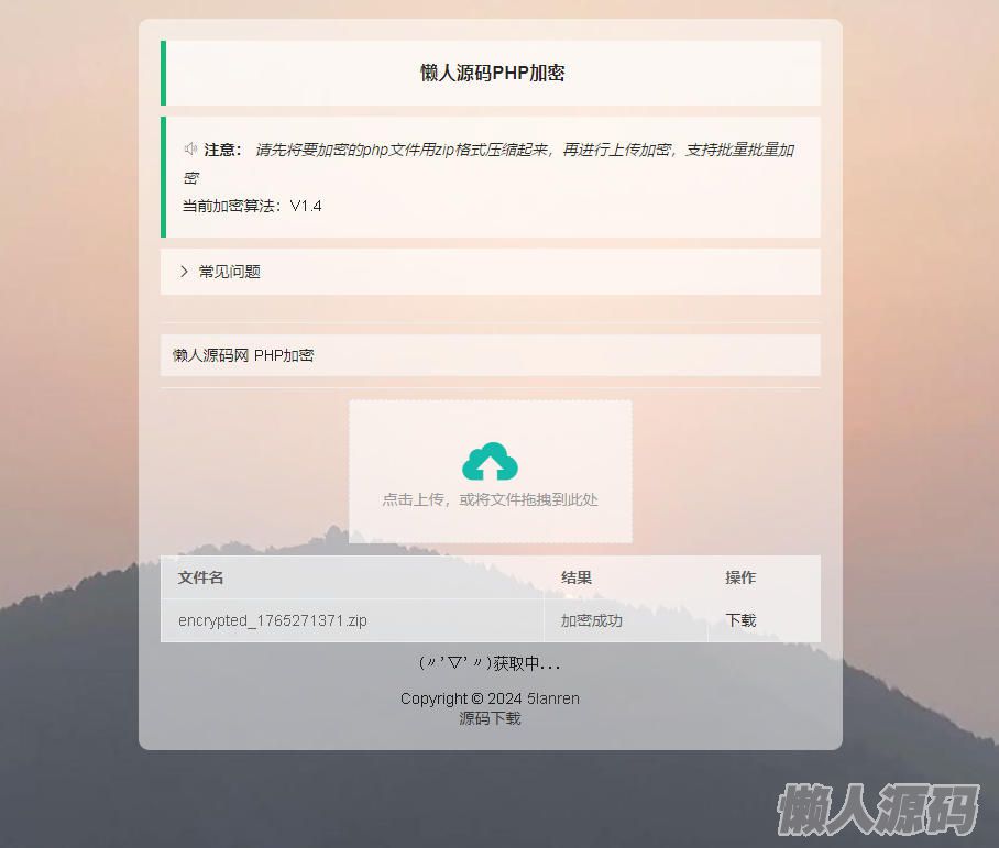 小猫咪 PHP加密 系统 历时半年,它再一次迎来更新,更新加密算法(这应该是后一次更新加密算法了,以后主要更新都在框架功能上面了),适配php56-php74,取消 批量加密 (一些不可控因素,为了的处理文件和安全问题),重新优化api代码,新增可以前台输入加密注释,后台新增一键清空历史加 密文 件,修复一些安全性的问题,支持自定义前台静态资源地址(现在主要的内容是 layui ,有点不完善)还是那句话,这前台我还是很喜欢。