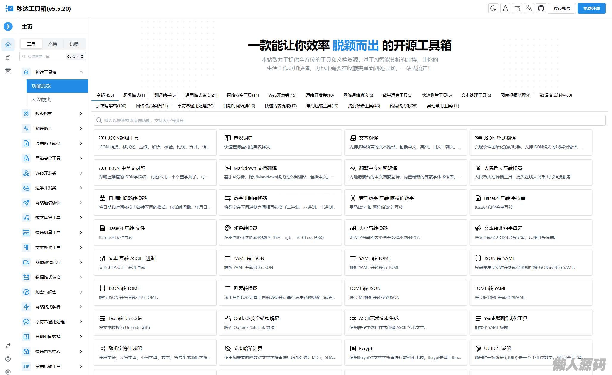 懒人源码 » 多功能秒达工具箱全开源源码,可自部署且完全开源的中文工具箱