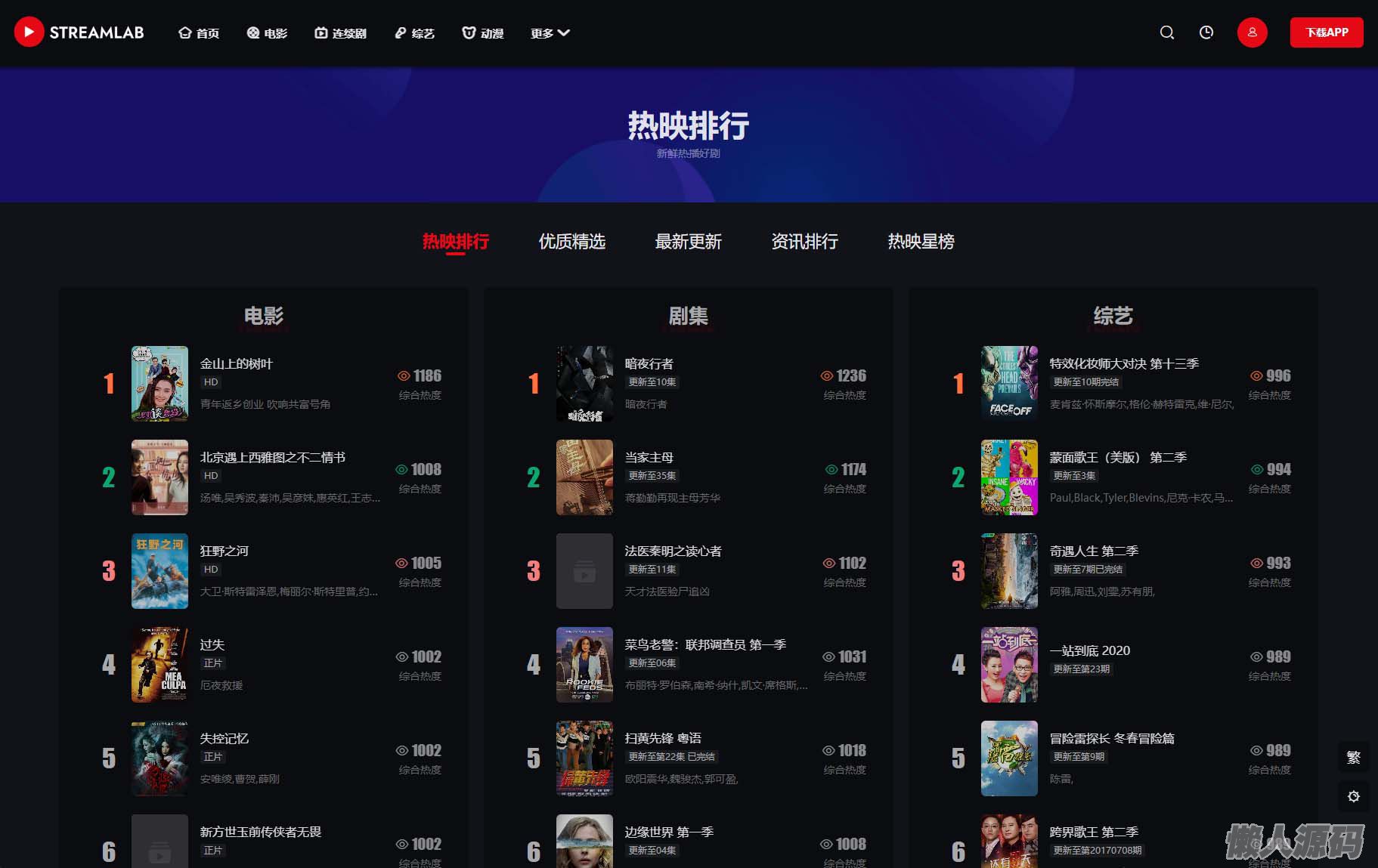 懒人源码 » 短视多功能主题第二套Streamlab | 苹果CMS | 首发