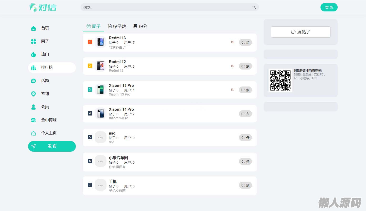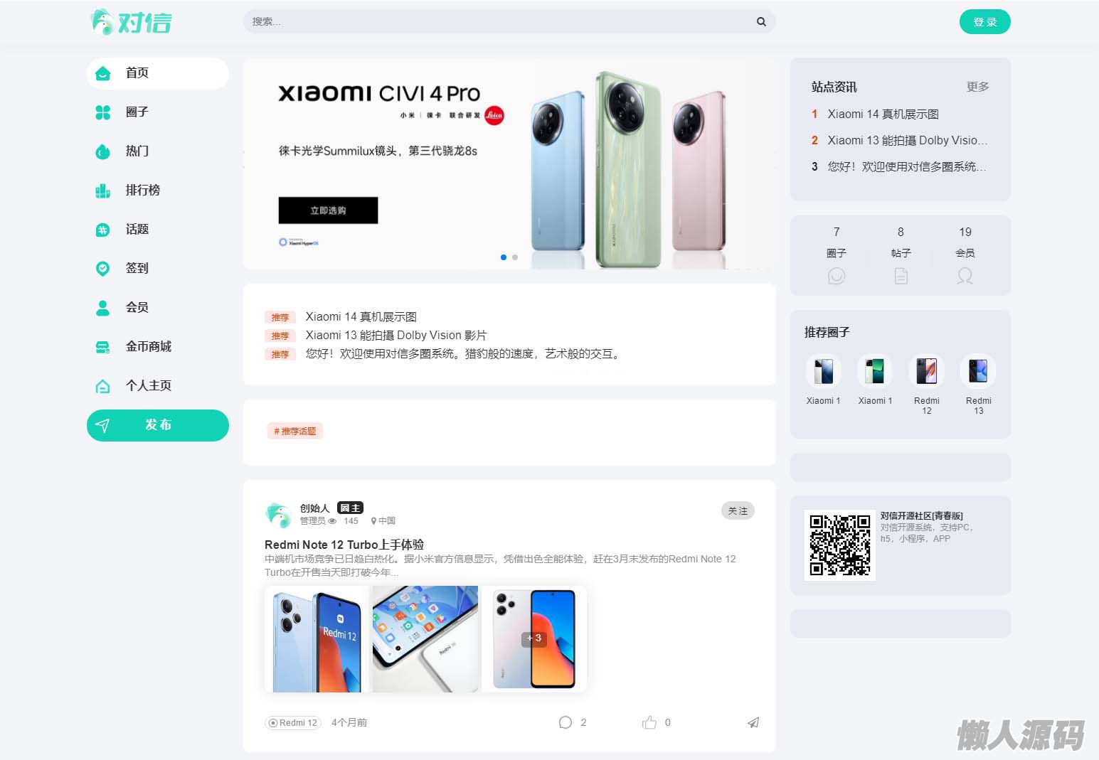 对信开源圈子系统全开源源码_多端支持_免费商用