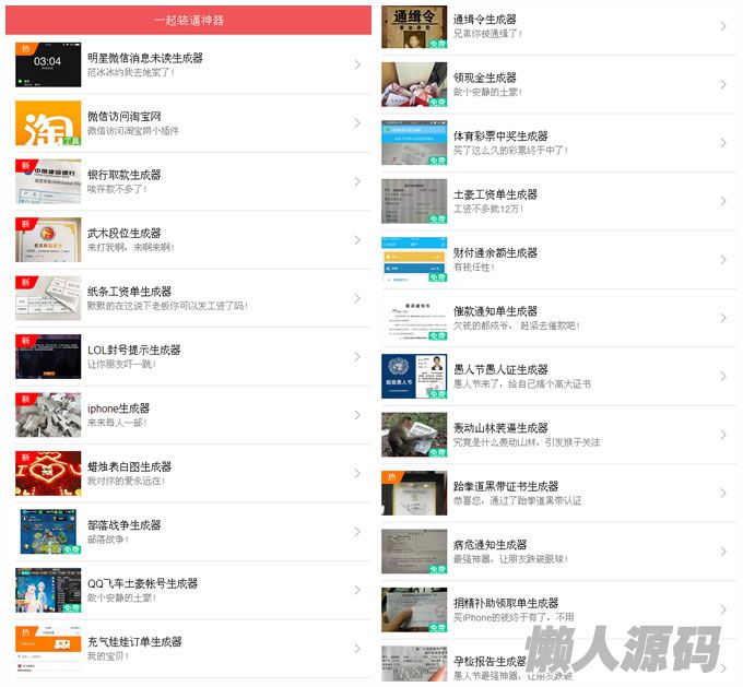 懒人源码 » 最新PHP装逼神器完整版源码分享,52个装逼效果WAP在线生成,无须数据库上传即可使用