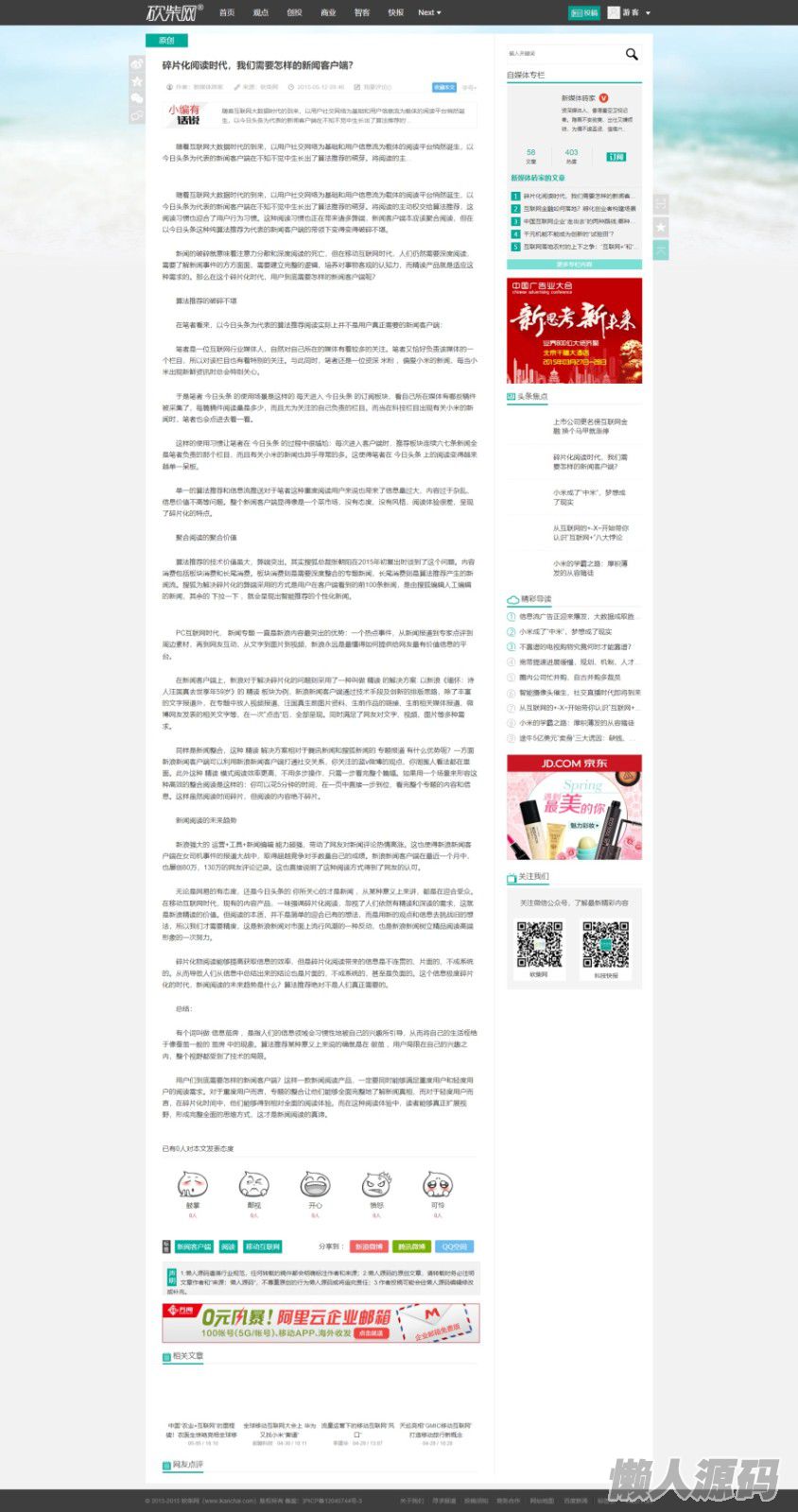 懒人源码 » 自媒体网站源码科技新闻文章类源码,会员投稿+作者专栏,砍柴网模板,帝国内核+手机