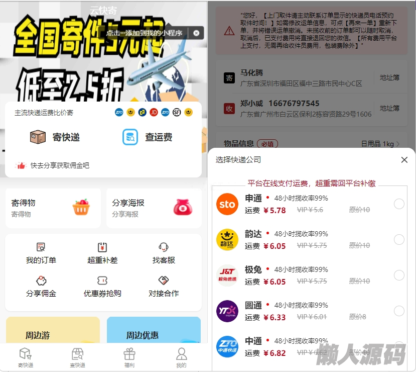 懒人源码 » 最新版快递小程序源码 独立版快递系统 附教程