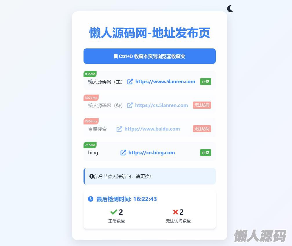 懒人源码 » 全新UI网址发布页源码_地址发布单页_带黑白模式