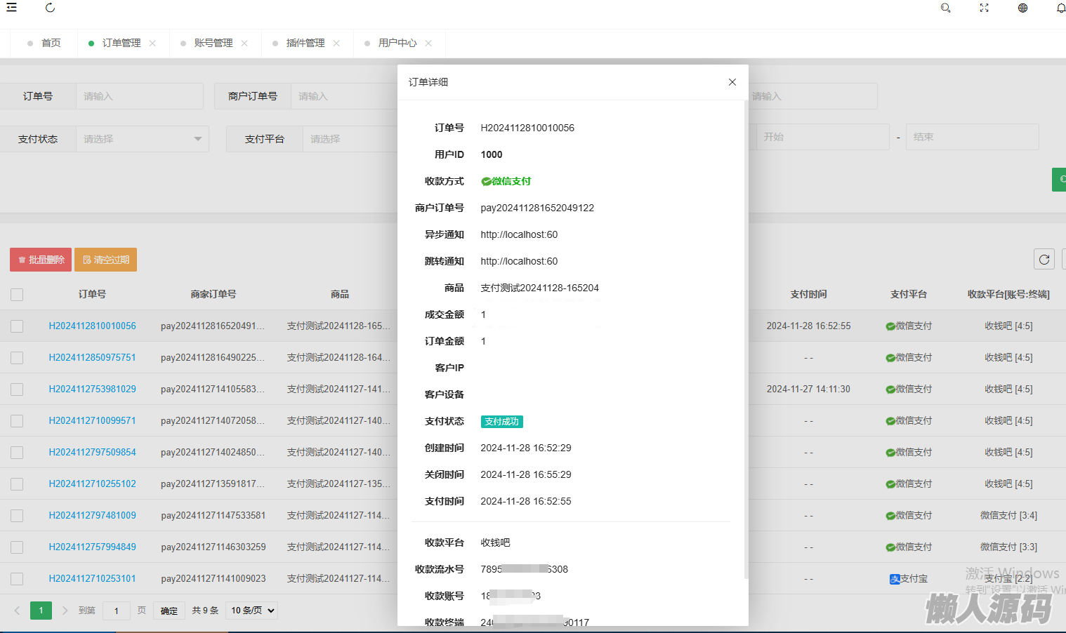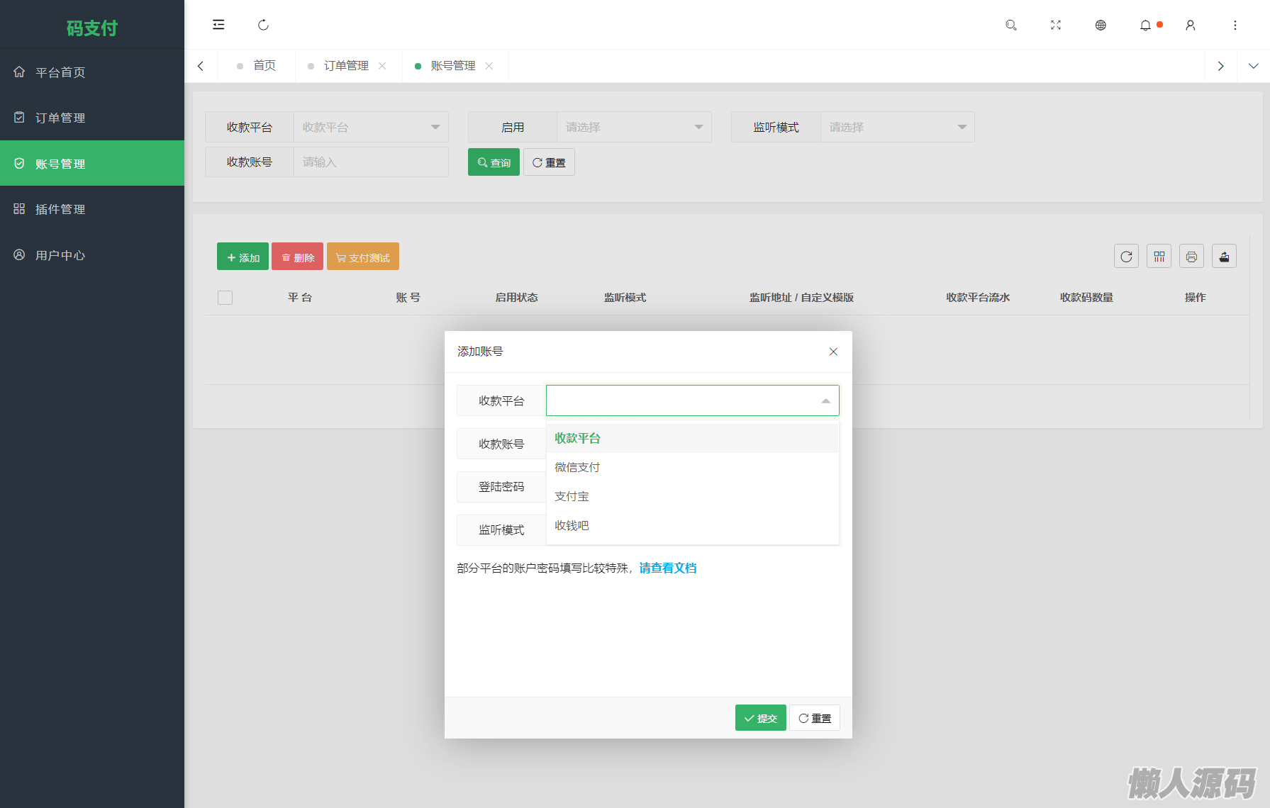 插件pay默认安装,支持赞赏码、个人码|经营码|商家码,2个通道,需挂机