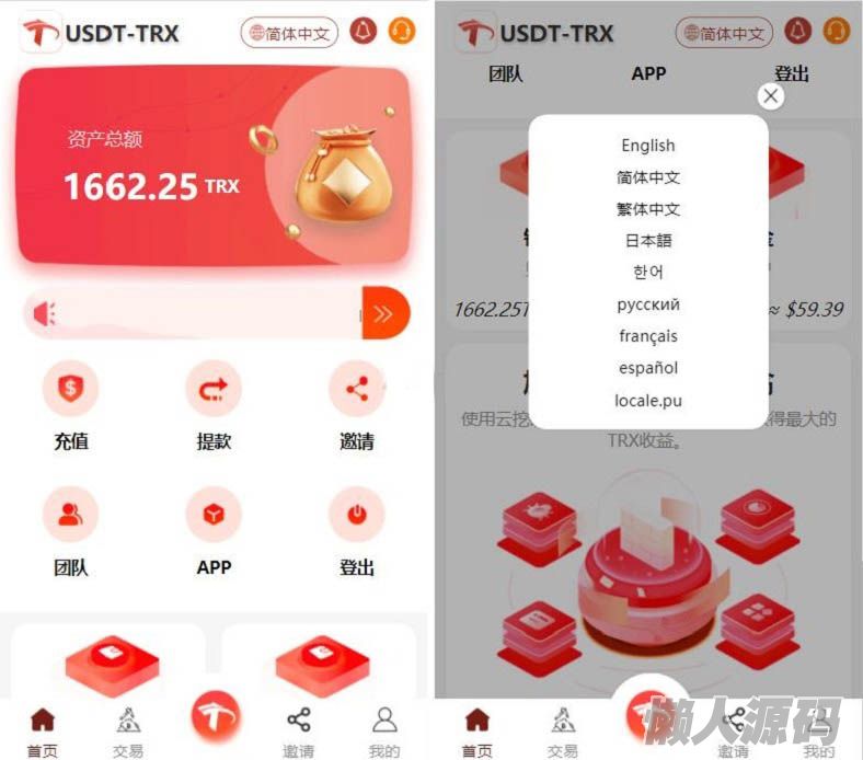 懒人源码 » uniapp版多语言TRX系统源码/TRX理财系统/虚拟币挖矿