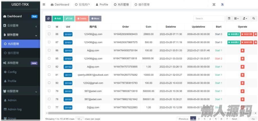 审核通过后,前台就会自动加币,上级也会有收益,这个收益是返佣的