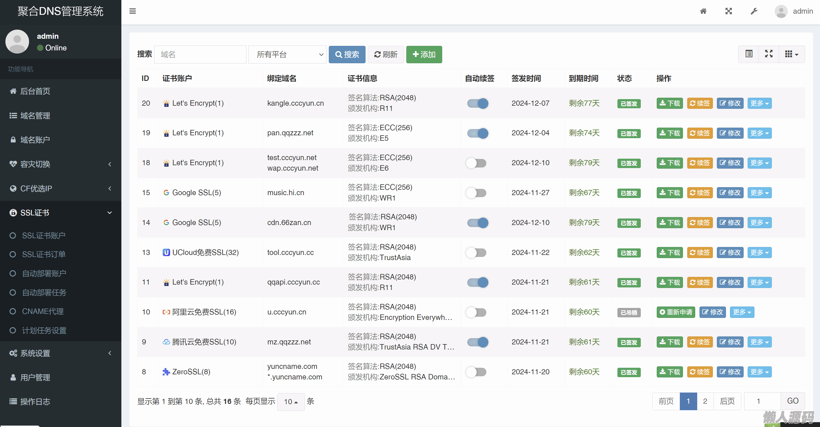 彩虹聚合DNS管理系统源码V2.0.1,SSL证书自动申请与部署