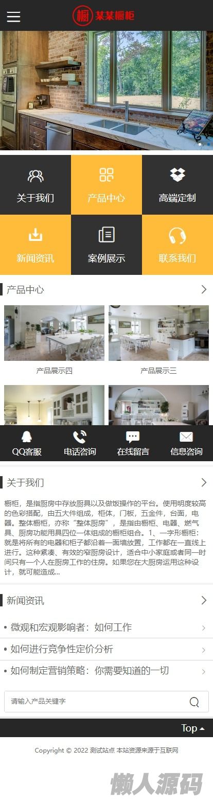 懒人源码 » 响应式高端大气厨具橱柜设计网站pbootcms整站源码自适应手机,适合各种企业网站