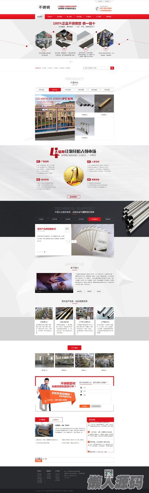 懒人源码 » 大气红色营销型钢材不秀钢网站pbootcms模板,通用型企业网站源码+自适应手机