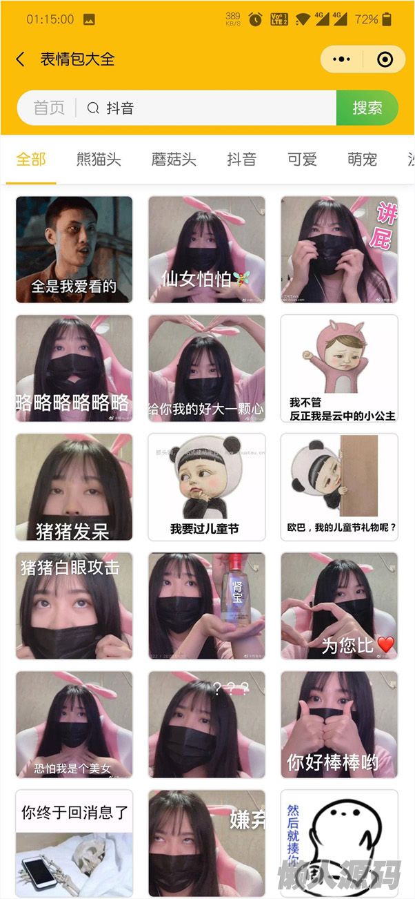 表情包小程序源码,网传火表情包小程序源码,带有版完整后台 API、小程序前端,并附带安装搭建说明。近很火的表情包小程序源码,小高亲测完整无错,有大量的数据,搭建即可使用。后端源码采用的是 ThinkCMF6.0 的框架,前端是原生的代码。