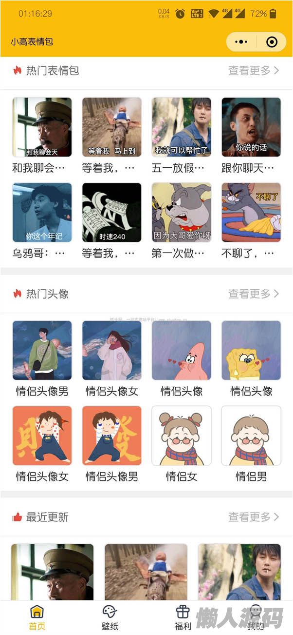 表情包+壁纸+外卖+头像+流量主+采集+后台上传表情包功能,启动,带后台