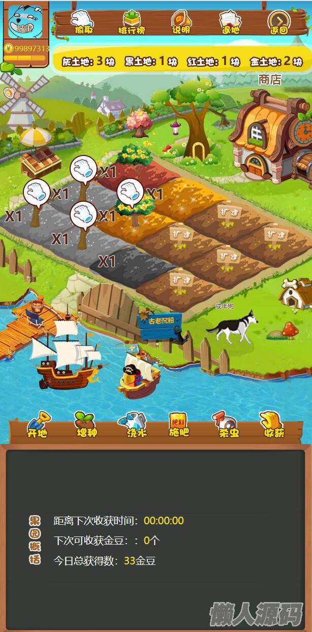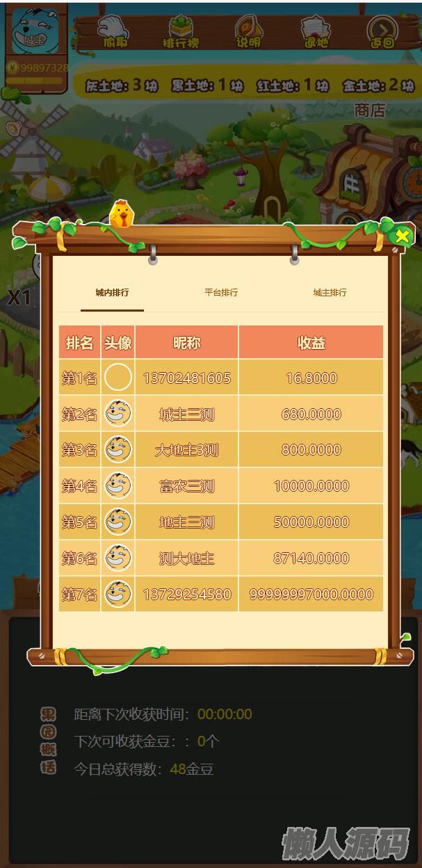 自定义添加土地和升级条件;支持实名认证、、退地;农场支持偷取功能,支持偷取设置