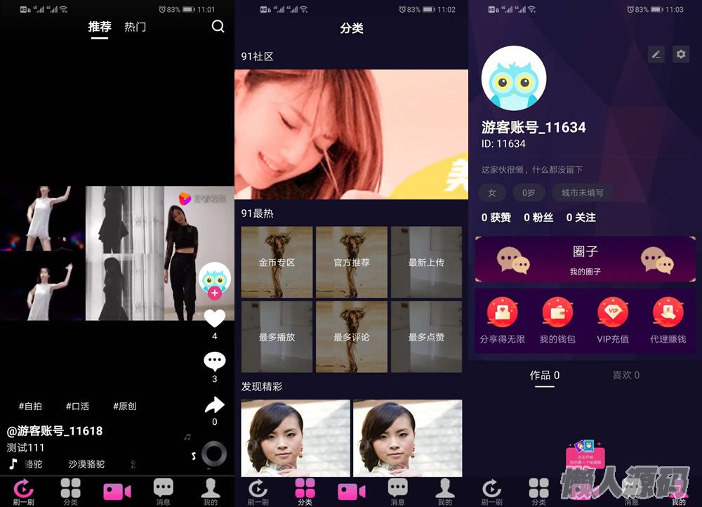懒人源码 » 市面售价2W的仿抖音短视频原生双端APP源码,带技术文档管理后台和数据库