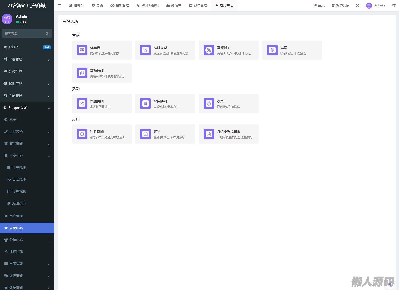 懒人源码 » Thinkphp+Uniapp开发的多端商城系统源码H5小程序APP支持DIY模板直播分销