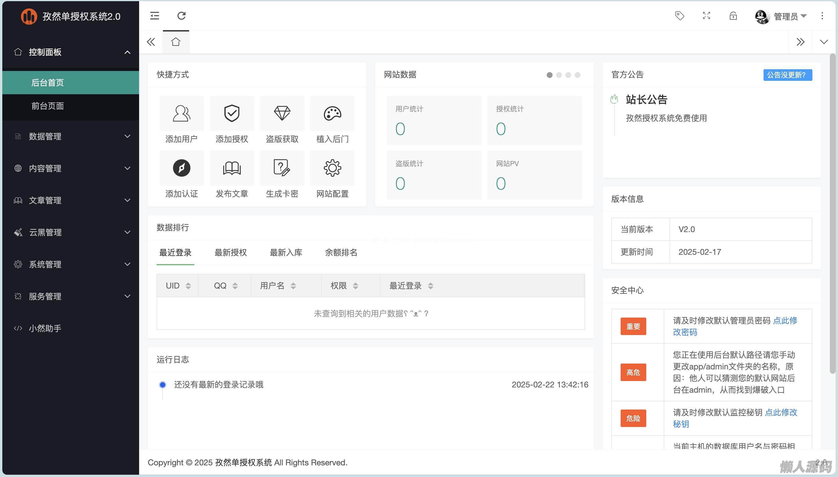懒人源码 » 孜然单授权系统V2.0PHP授权系统源码