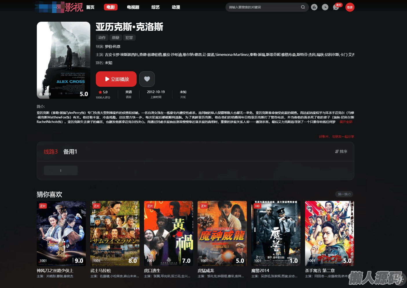 懒人源码 » 首涂第三十八套_仿爱电影模板 | 苹果CMS模板