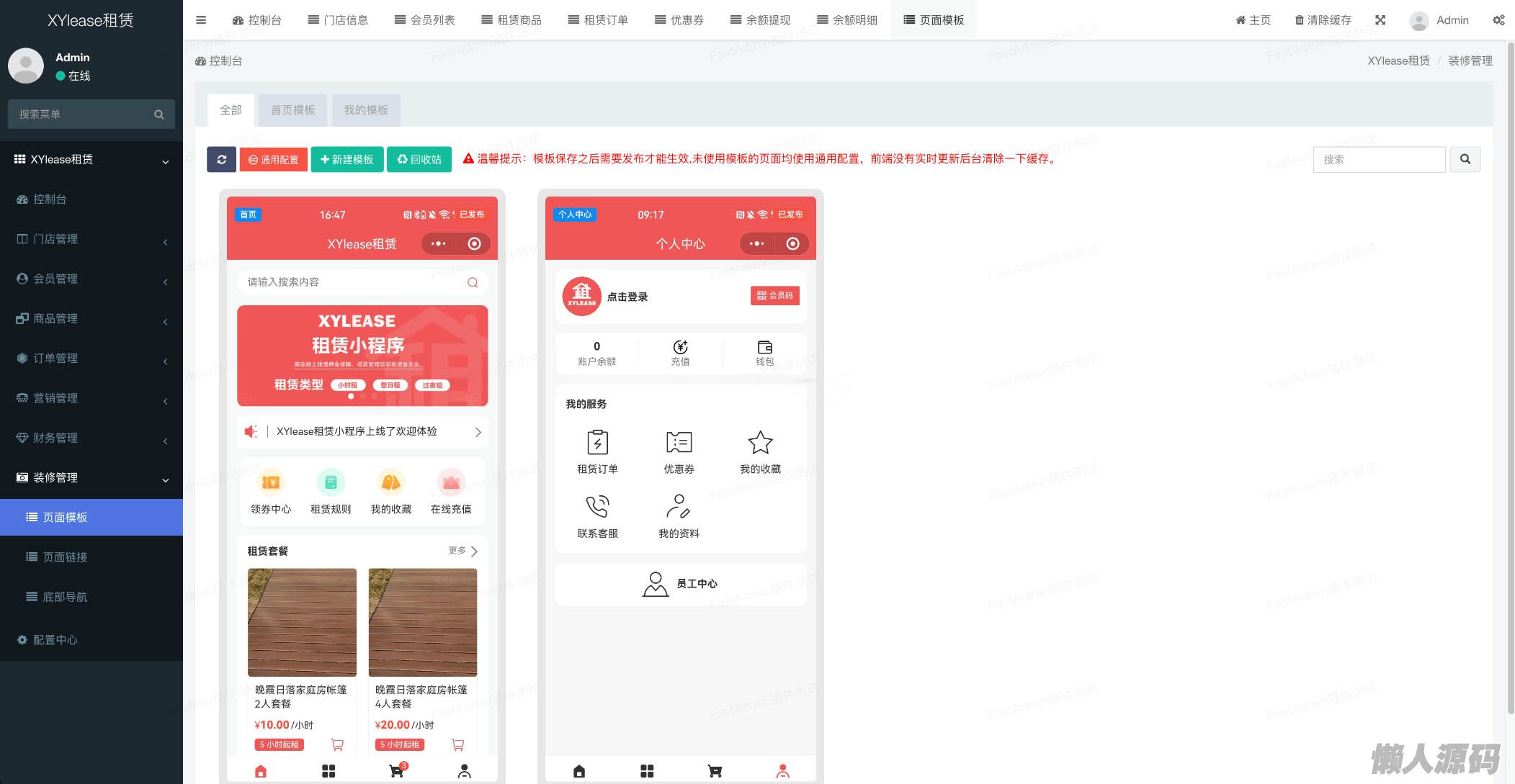 全新租赁 小程序系统源码 基于 thinkphp + un iapp 开发的租赁 商城小程序
