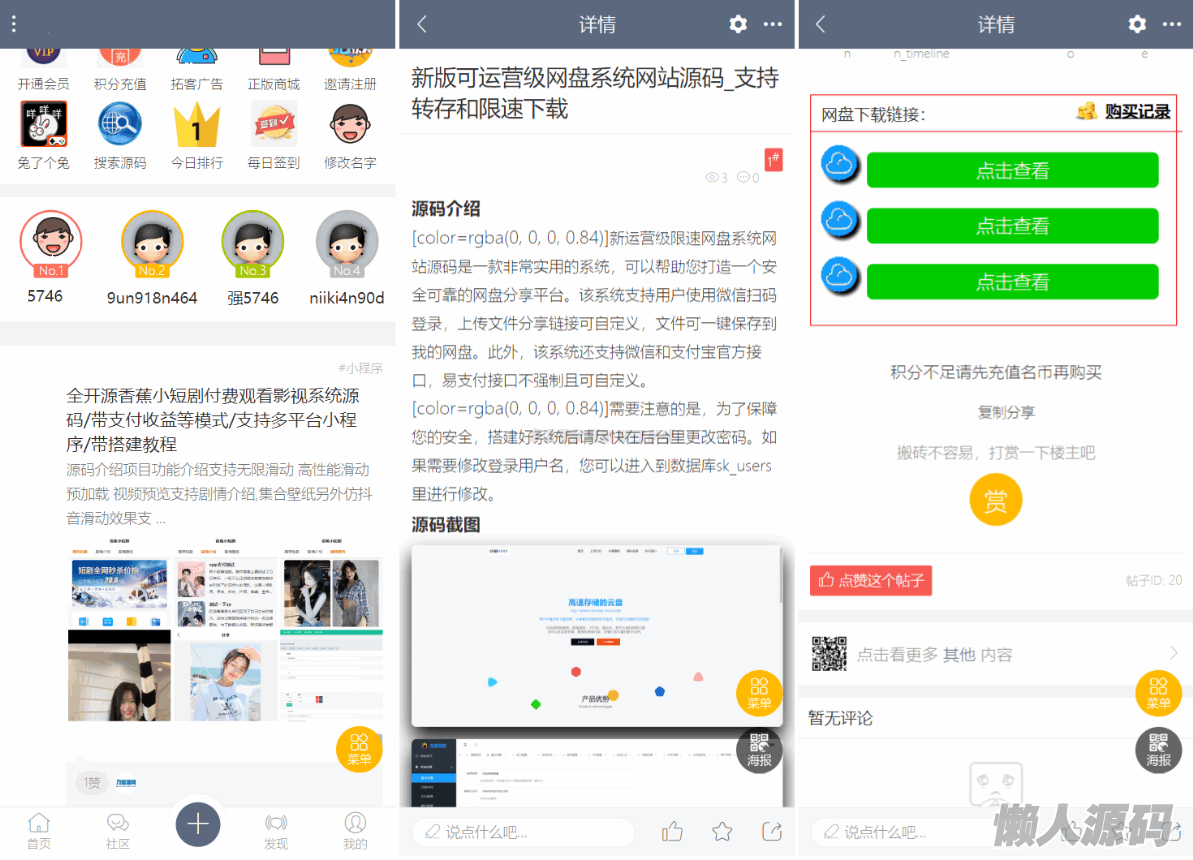 懒人源码 » 最新论坛社区系统网站源码 在线商城,知识付费下载,拓客广告等
