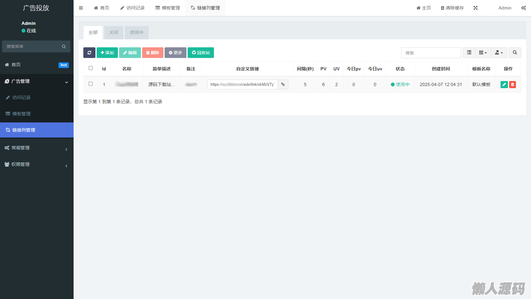 一个专注于 广告投放 优化的开源系统,集成了定向和效果功能,助力使用者管理广告资源。用户可以广告投放效果,查看访问人数并统计PV、UV数据。此系统提供多套跳转页面模板,让用户根据需求选择的样式。 用户可以自定义 生成 短链接 ,输入自定义的 短链接 后缀,系统会检查是否已经存在该短链接,若不存在则生成对应的短链接。根据需要创建个性化的短链接,方便分享和使用。 具体如下: