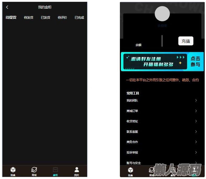 懒人源码 » 暗黑盲盒微信小程序源码 暗网盲盒商城开发 公众号二开版源码