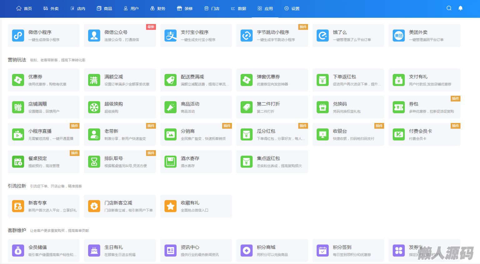 懒人源码 » 云贝餐饮连锁独立版 v2.6.1+公众号+小程序端+抖音端+全插件(永久授权版)
