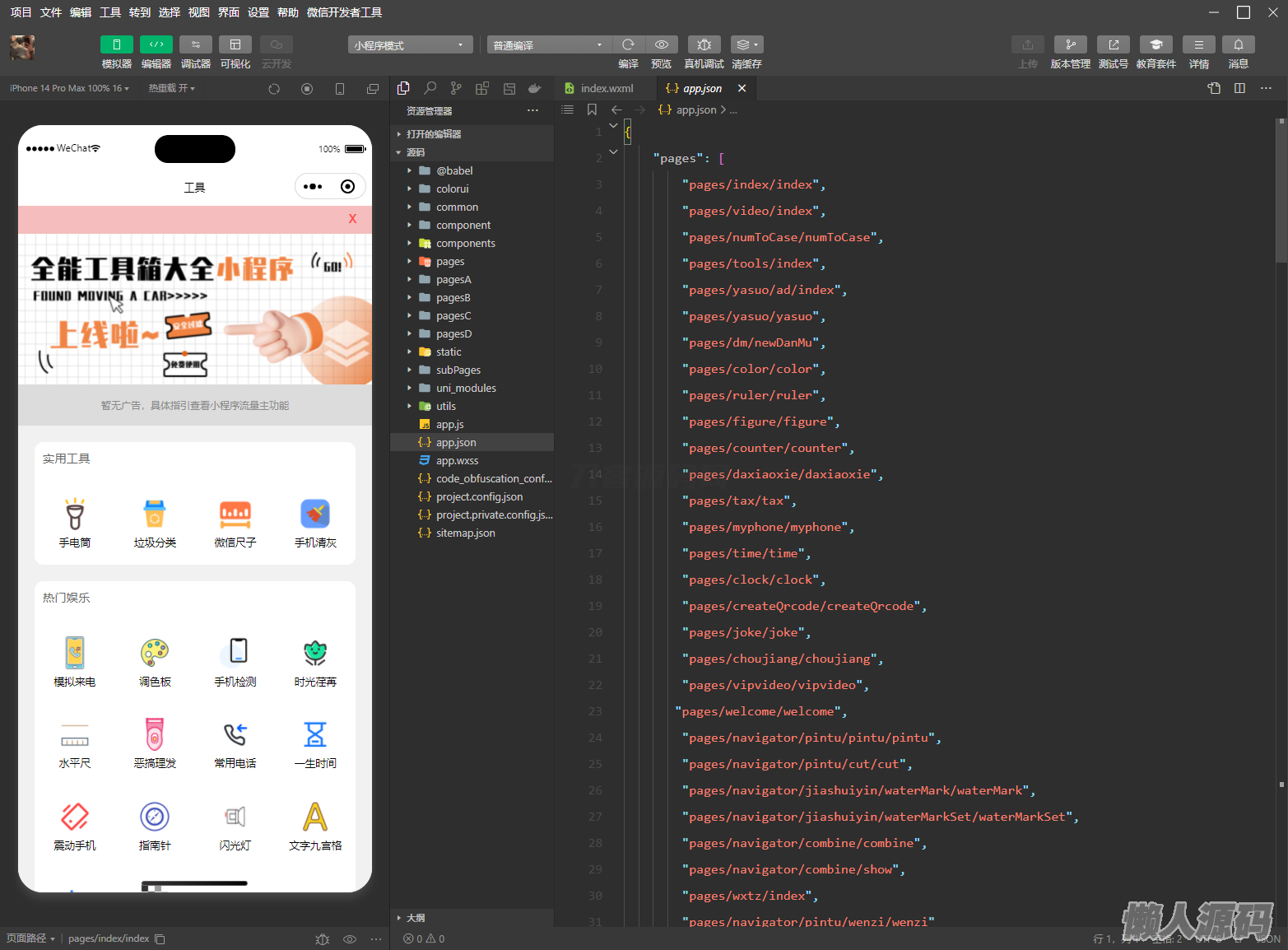 懒人源码 » 微信实用工具箱集合小程序源码
