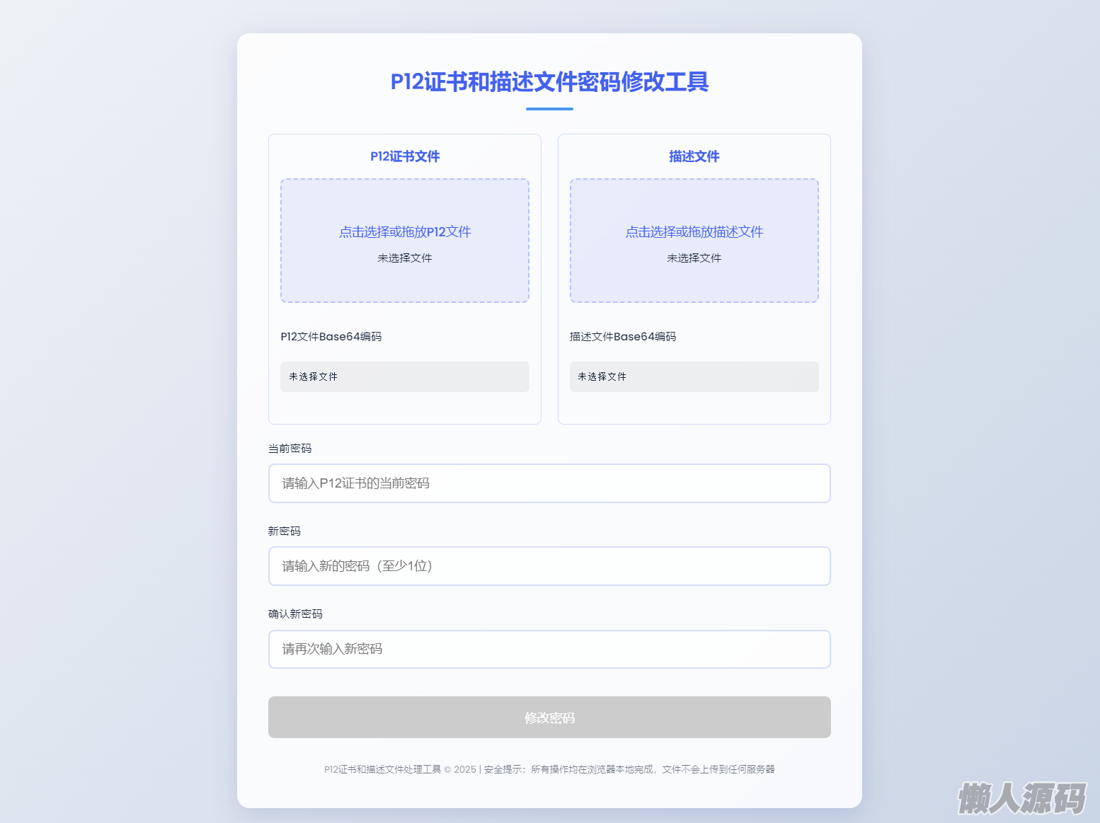 这是一款证书P12密码修页源码,修改之后自动附件到本地
