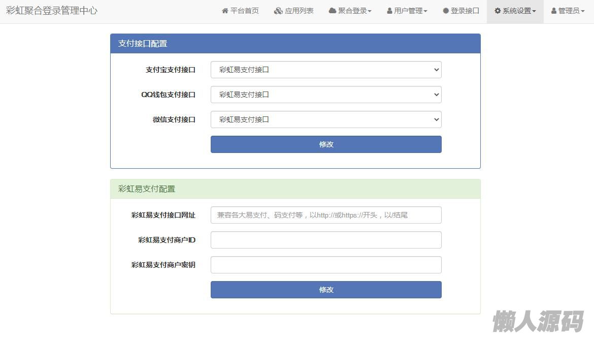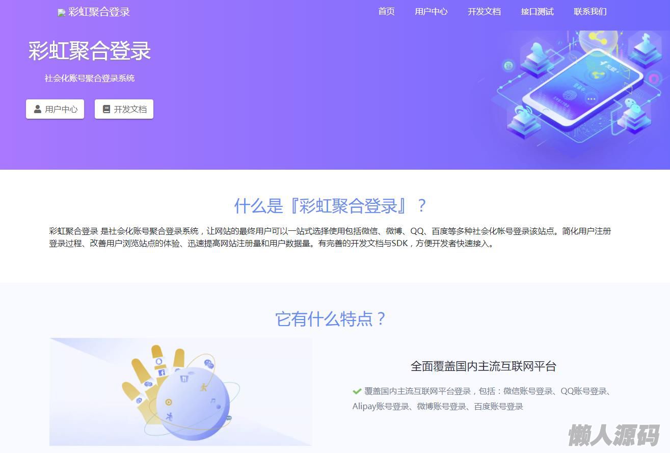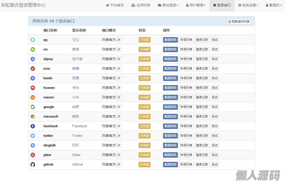 懒人源码 » 彩虹聚合登录系统源码开心版 一站式社会化账号登录系统