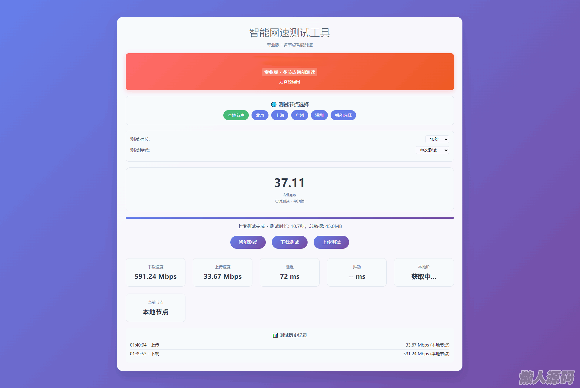 懒人源码 » 智能网速在线测试网站源码_宽带网速检测