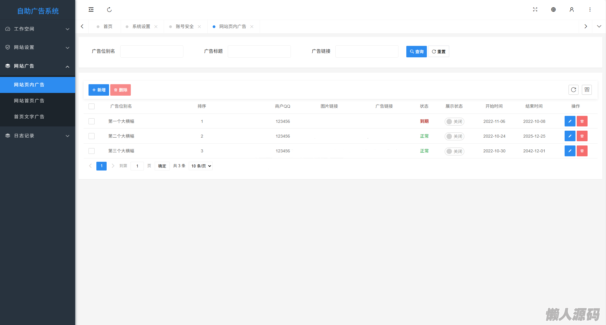懒人源码 » 网站自助广告投放系统源码 附安装教程