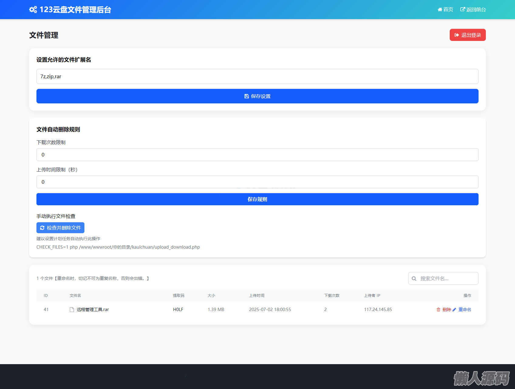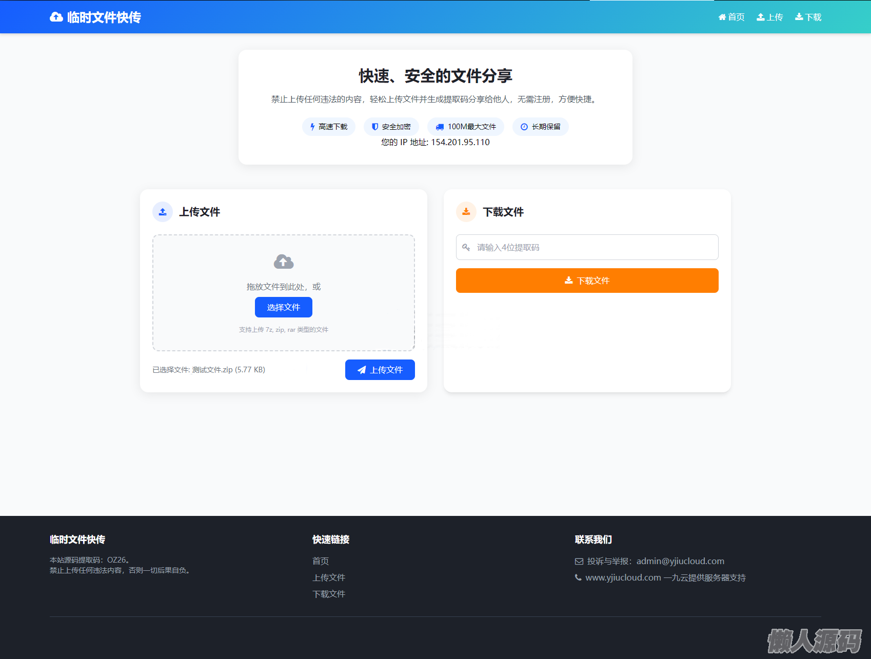 懒人源码 » 最新临时文件快传系统源码 轻量化 带后台 首发