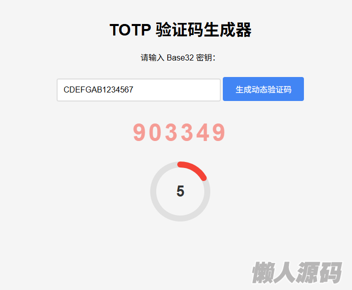 懒人源码 » 纯网页版TOTP动态验证码生成器