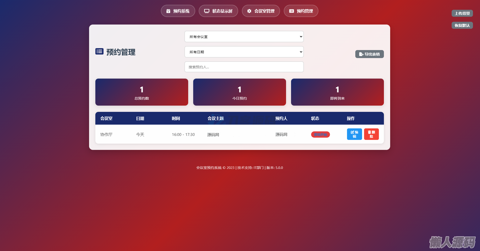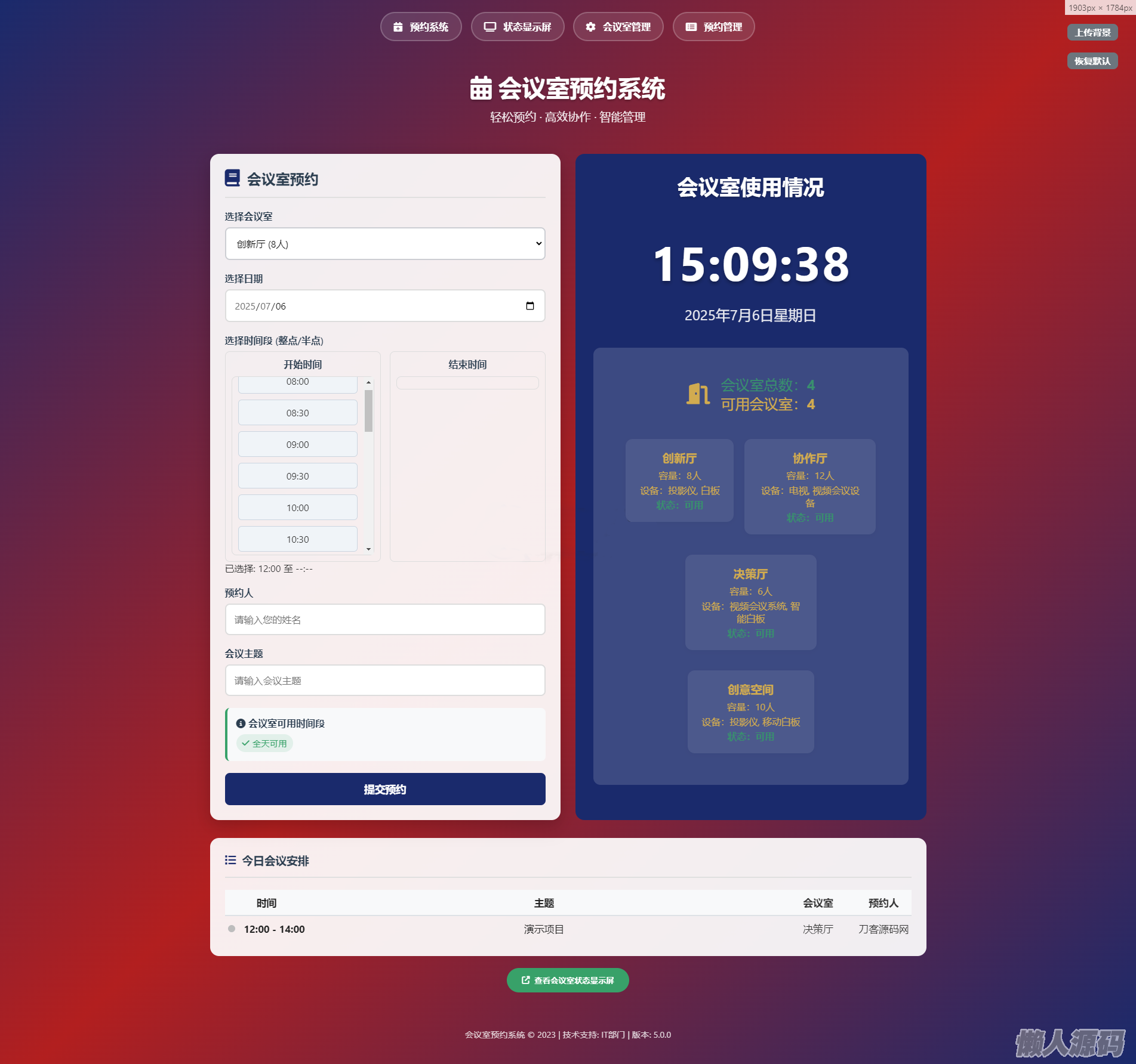 包含预约界面,状态显示屏, 会议室 管理,预约管理