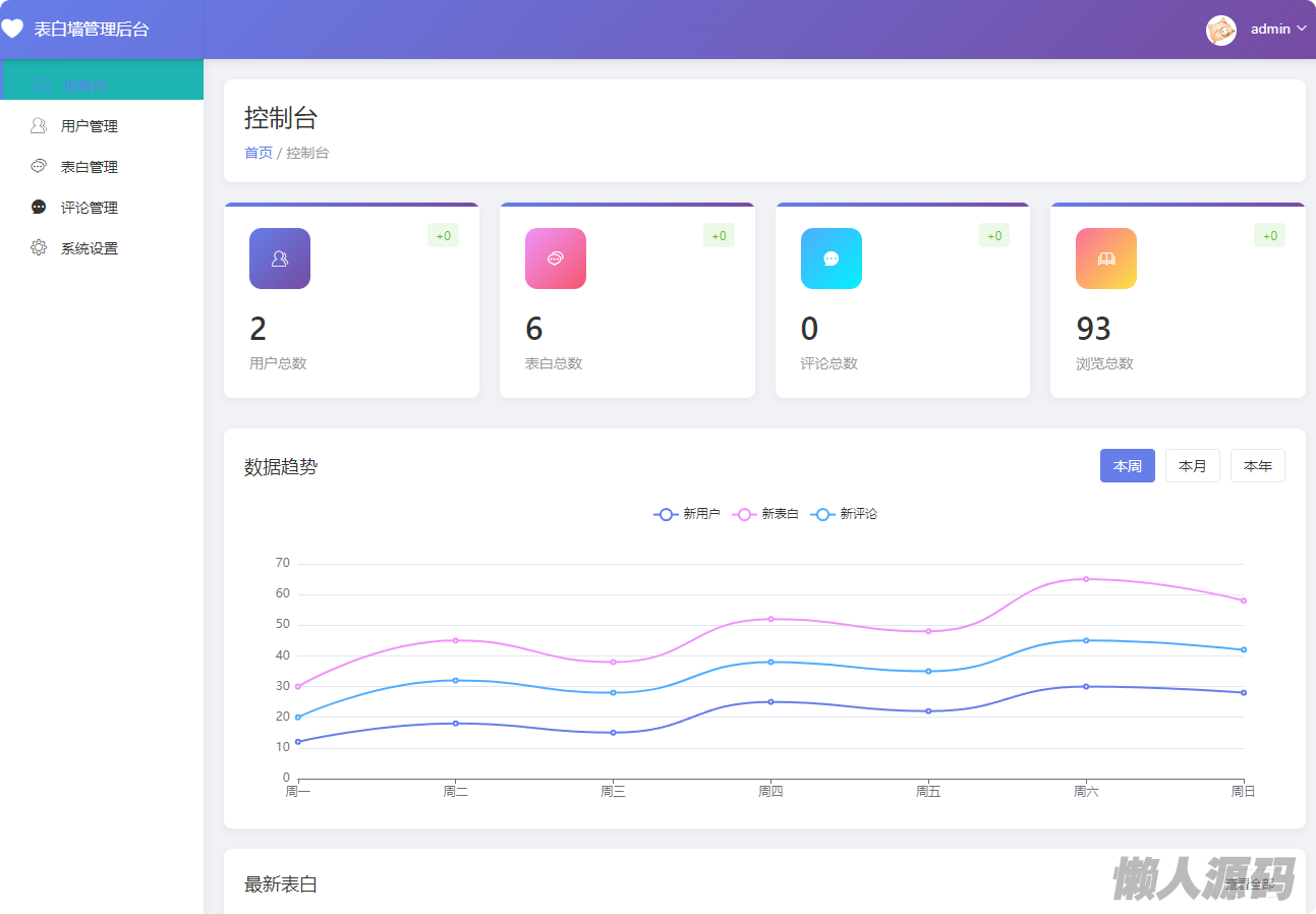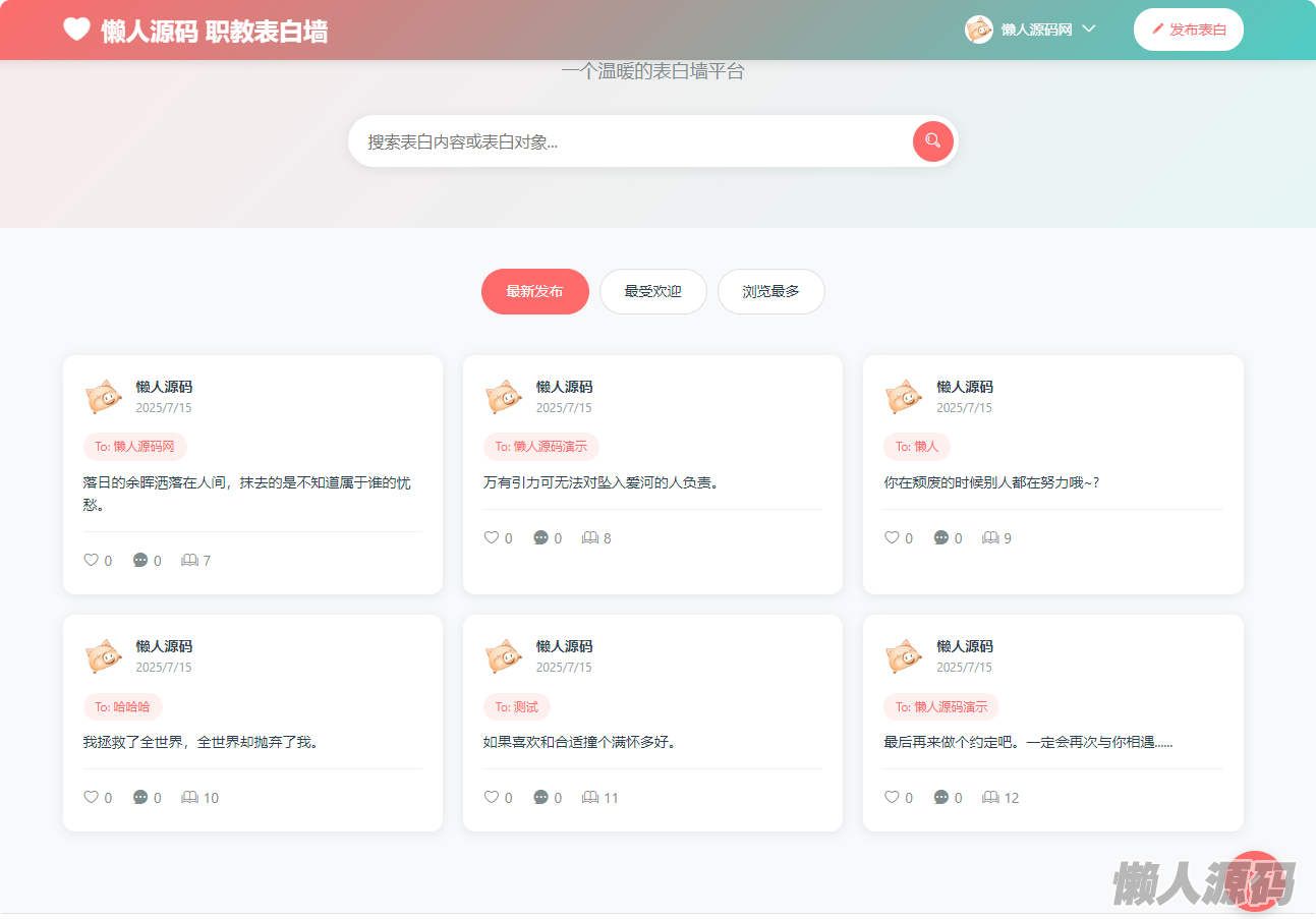 懒人源码 » 最新轻量美化表白墙系统源码v2.0 带后台版 附搭建教程
