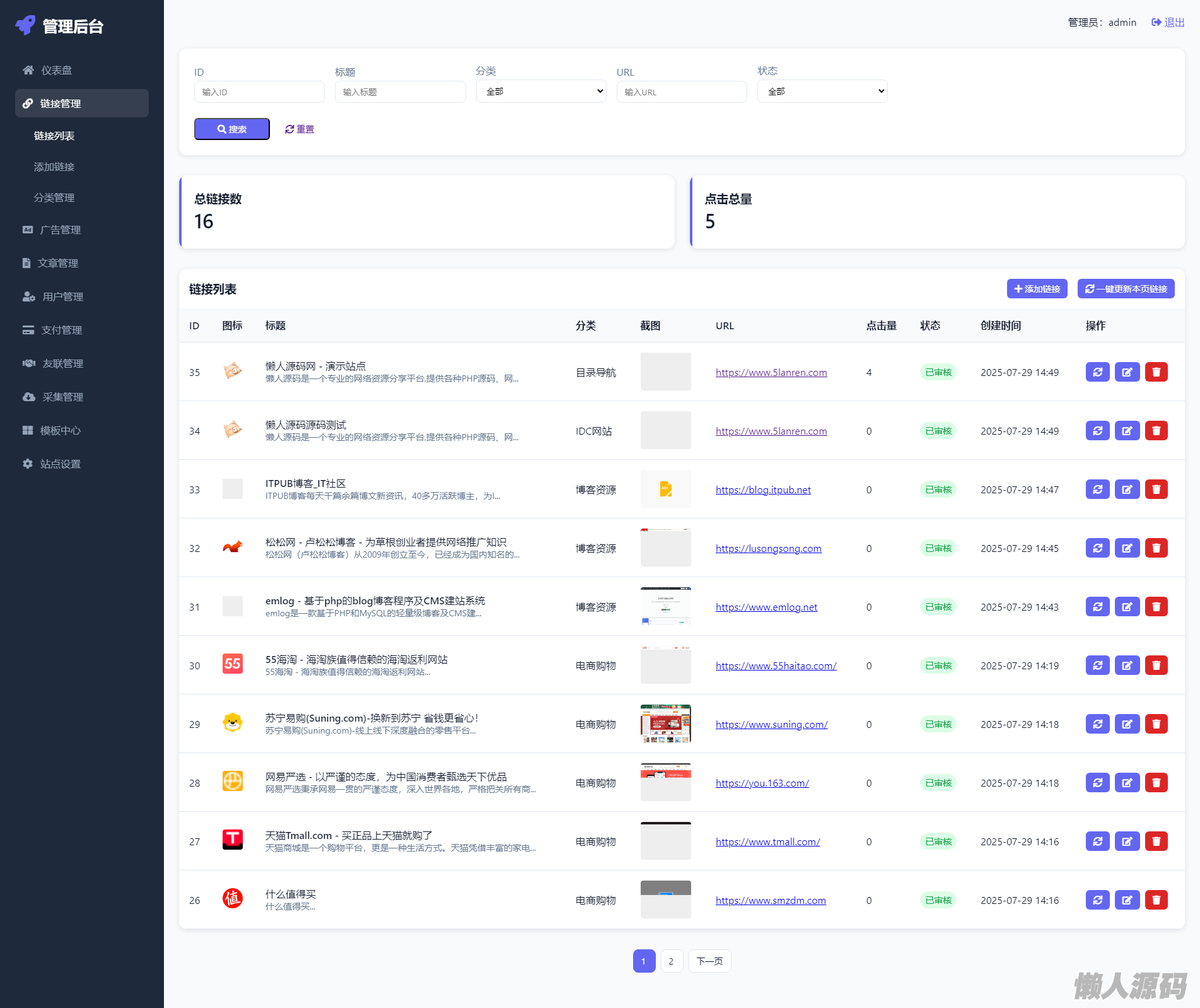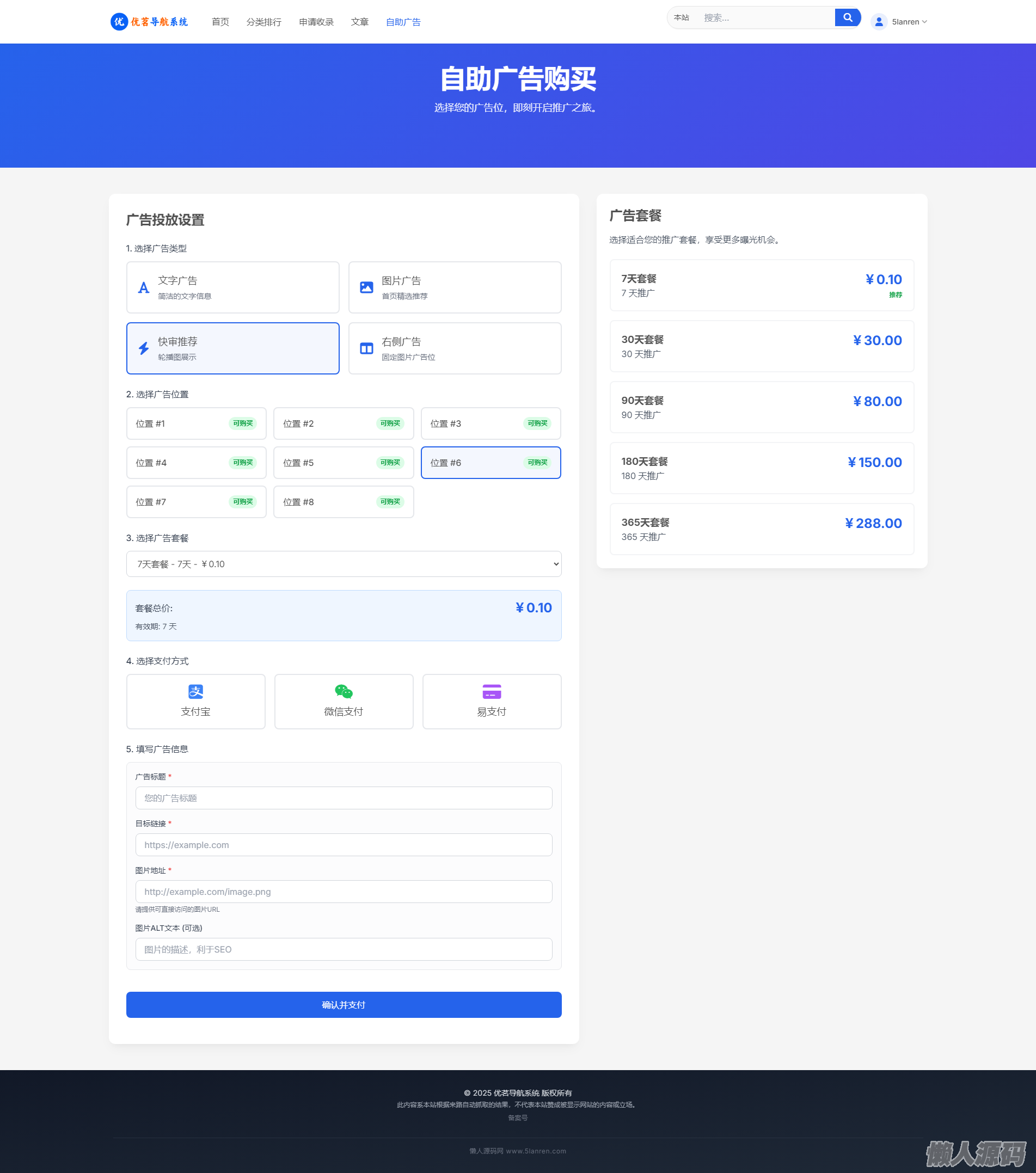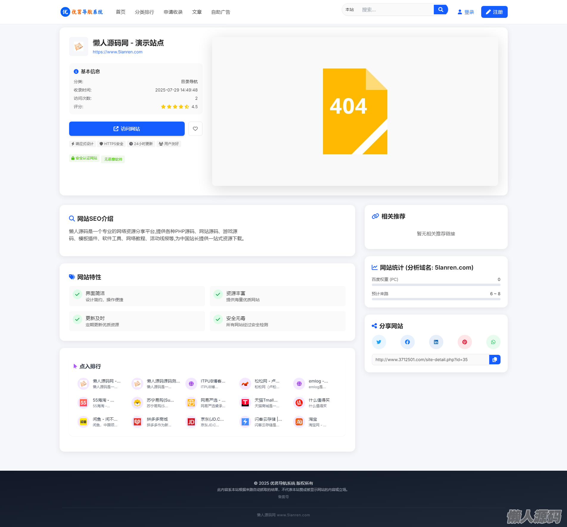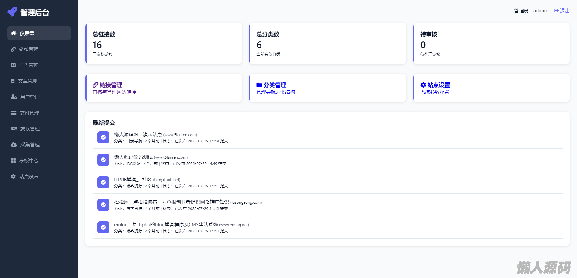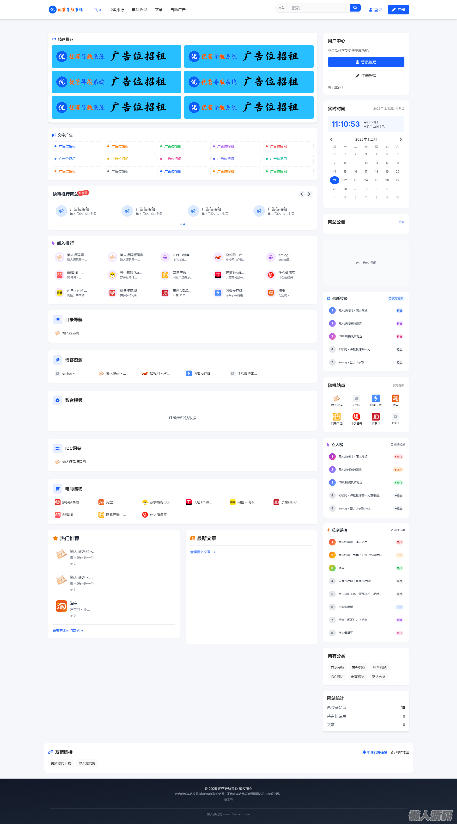 懒人源码 » 最新优茗导航系统源码/全开源版本/精美UI/带后台/附教程