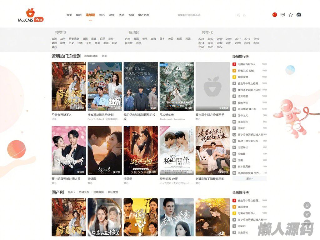 懒人源码 » 最新Pro版视频影视系统源码 含9套模板