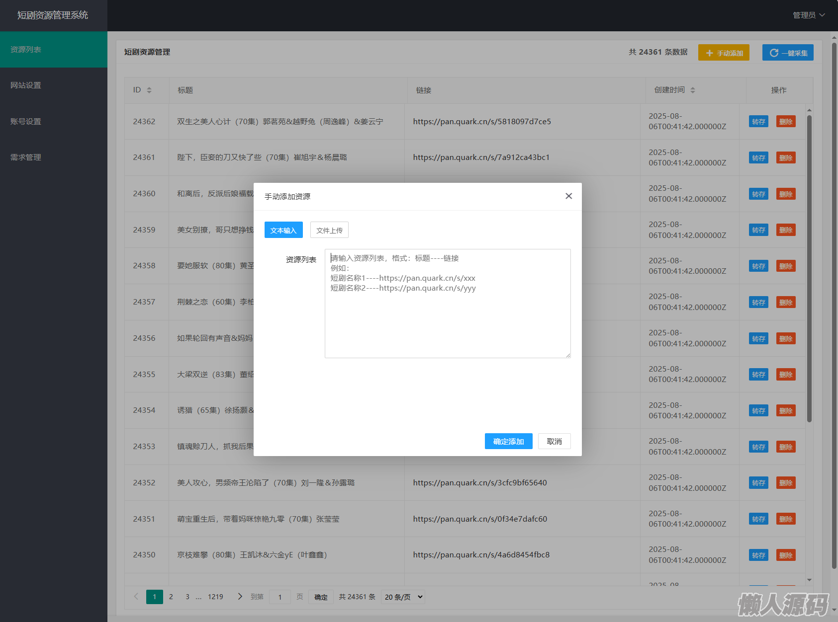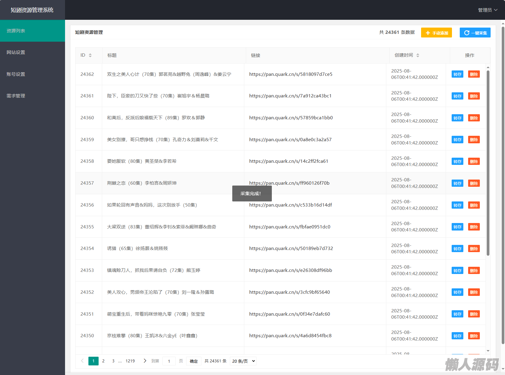 懒人源码 » 网盘短剧资源转存项目源码 支持夸克 带后台 附教程