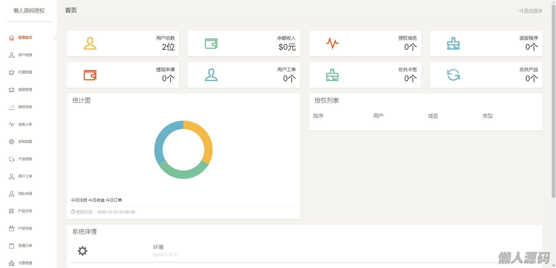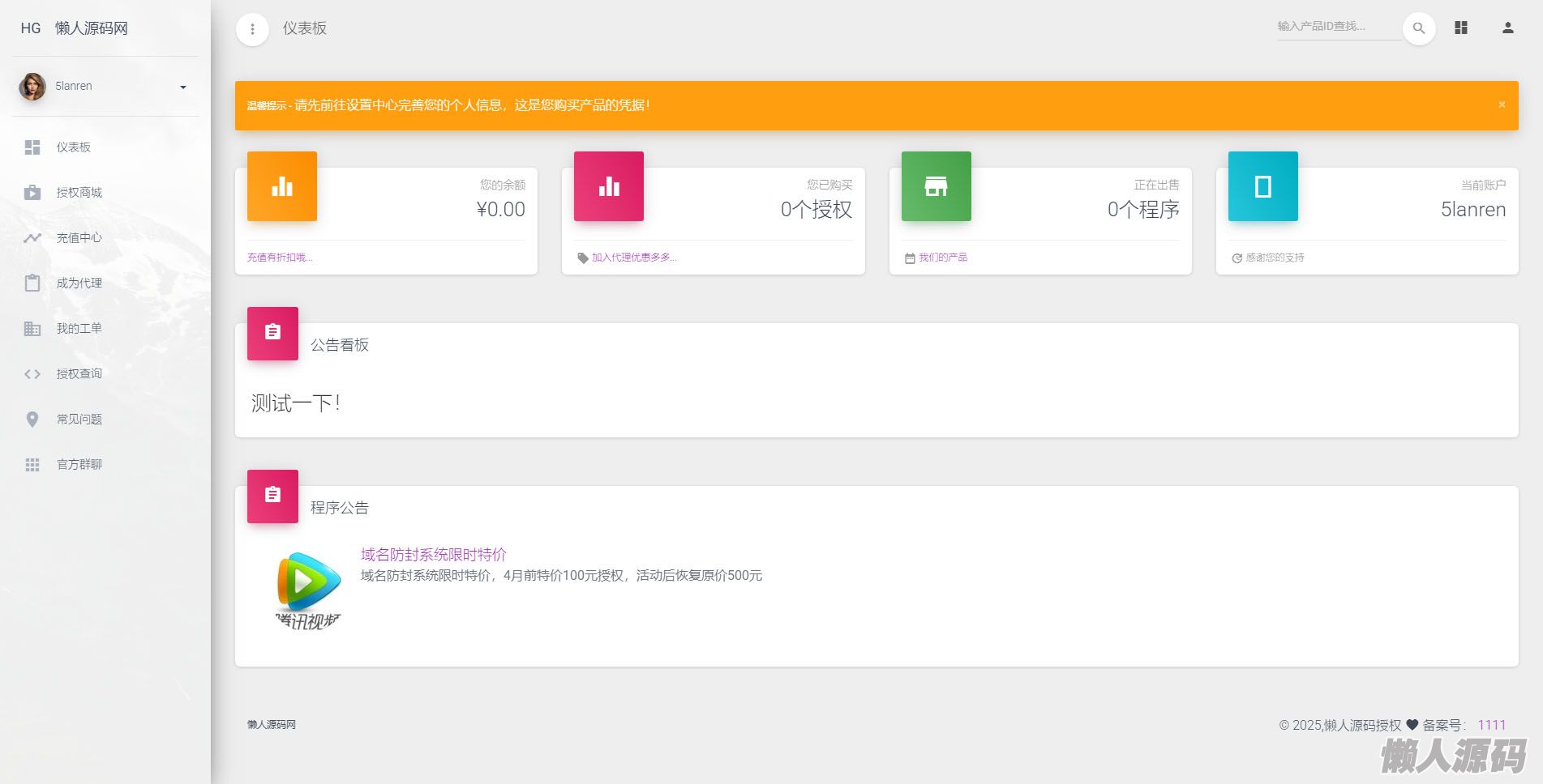 懒人源码 » PHP域名授权系统网站源码/授权管理工单系统/精美UI/附教程