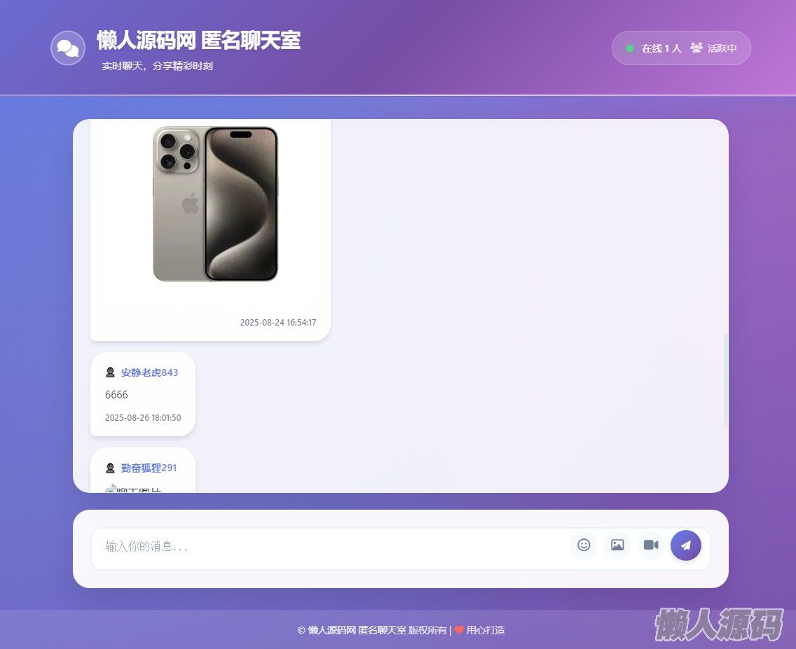 懒人源码 » 全新UI匿名在线聊天室系统源码 | 全开源轻量化