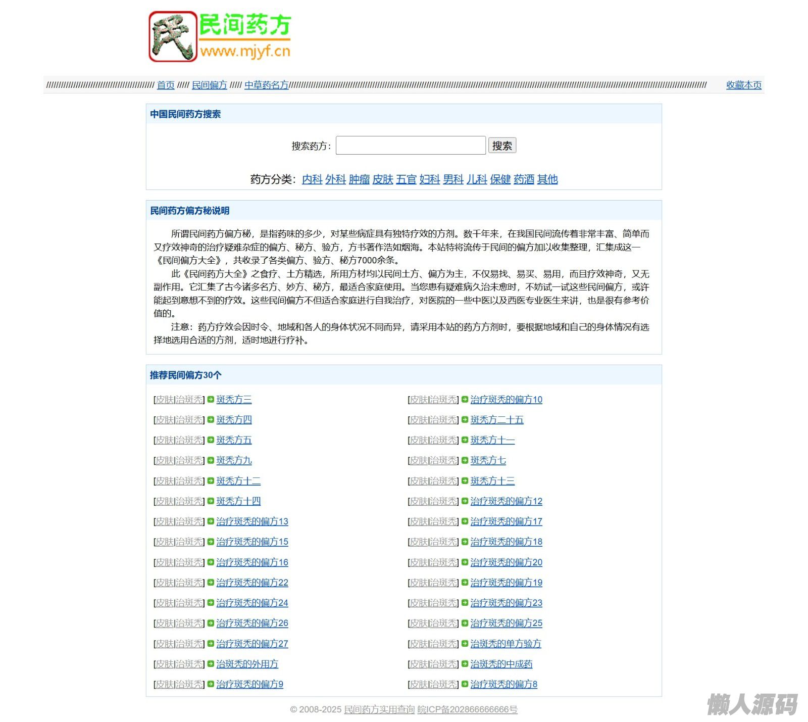 懒人源码 » 民间药方偏方网站整站源码 带数据PHP版