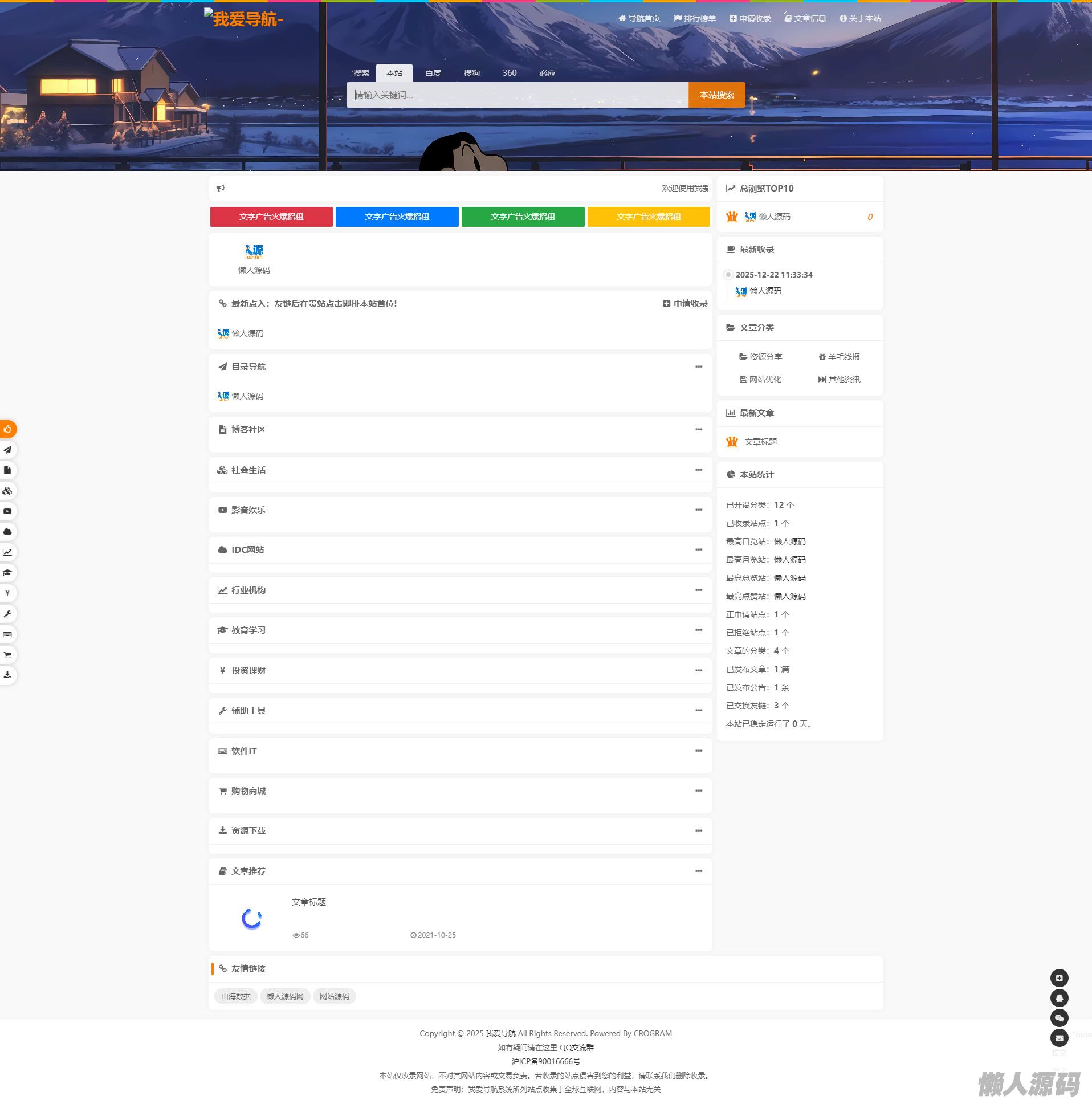 我爱导航系统 网上网站,支持前台自主提交收录、自动获取TDK与网站Icon与后端审核管理,涵盖网站收录和文章发布等。