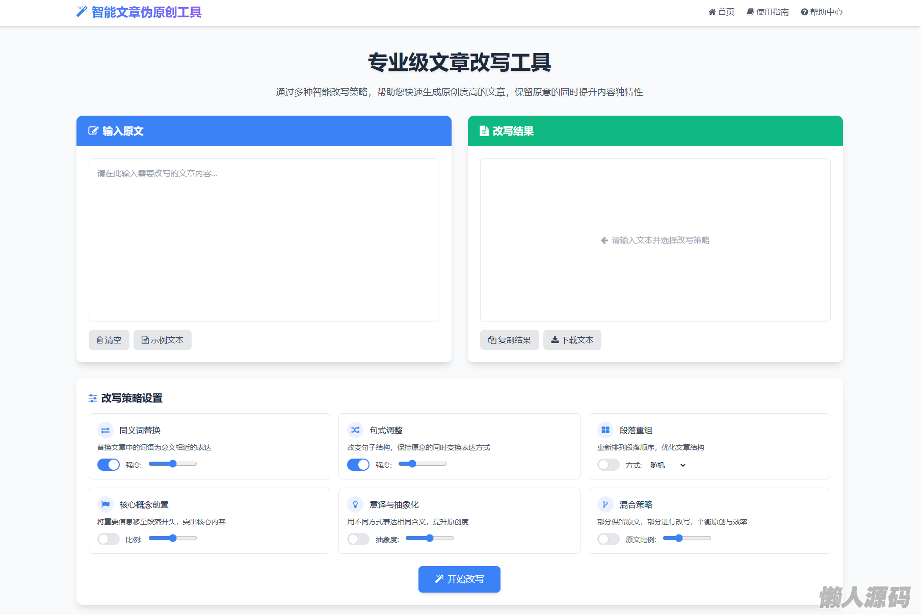 懒人源码 » 专业级AI智能文章伪原创工具 在线伪原创文章系统