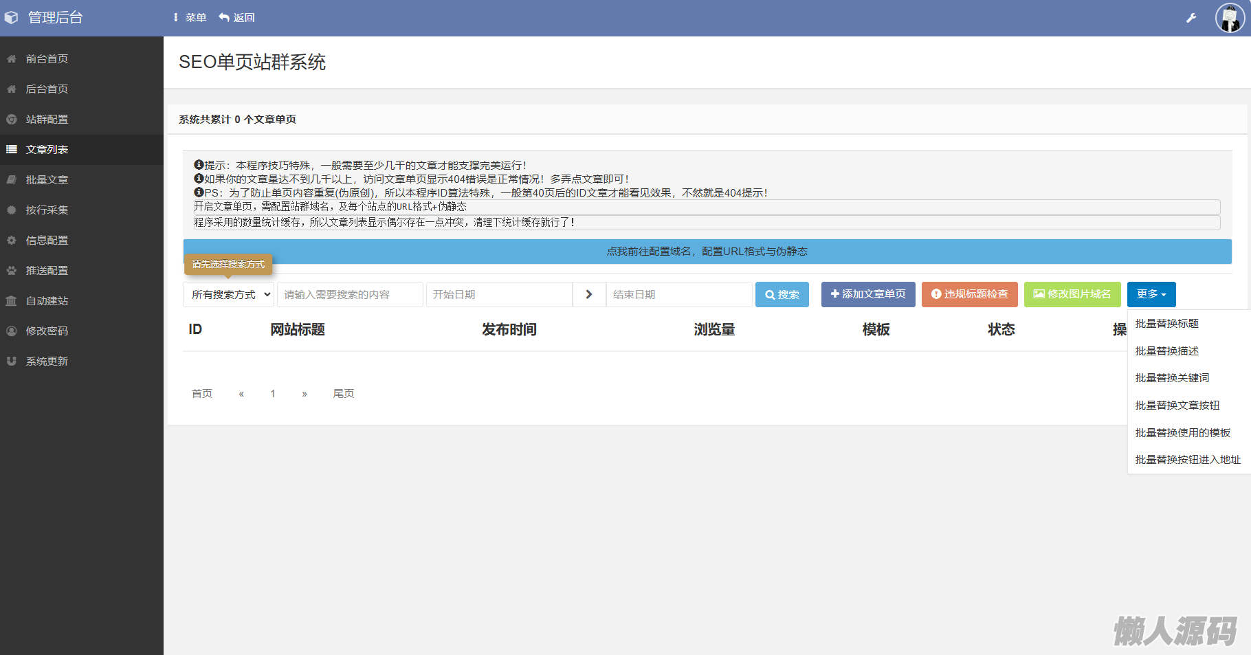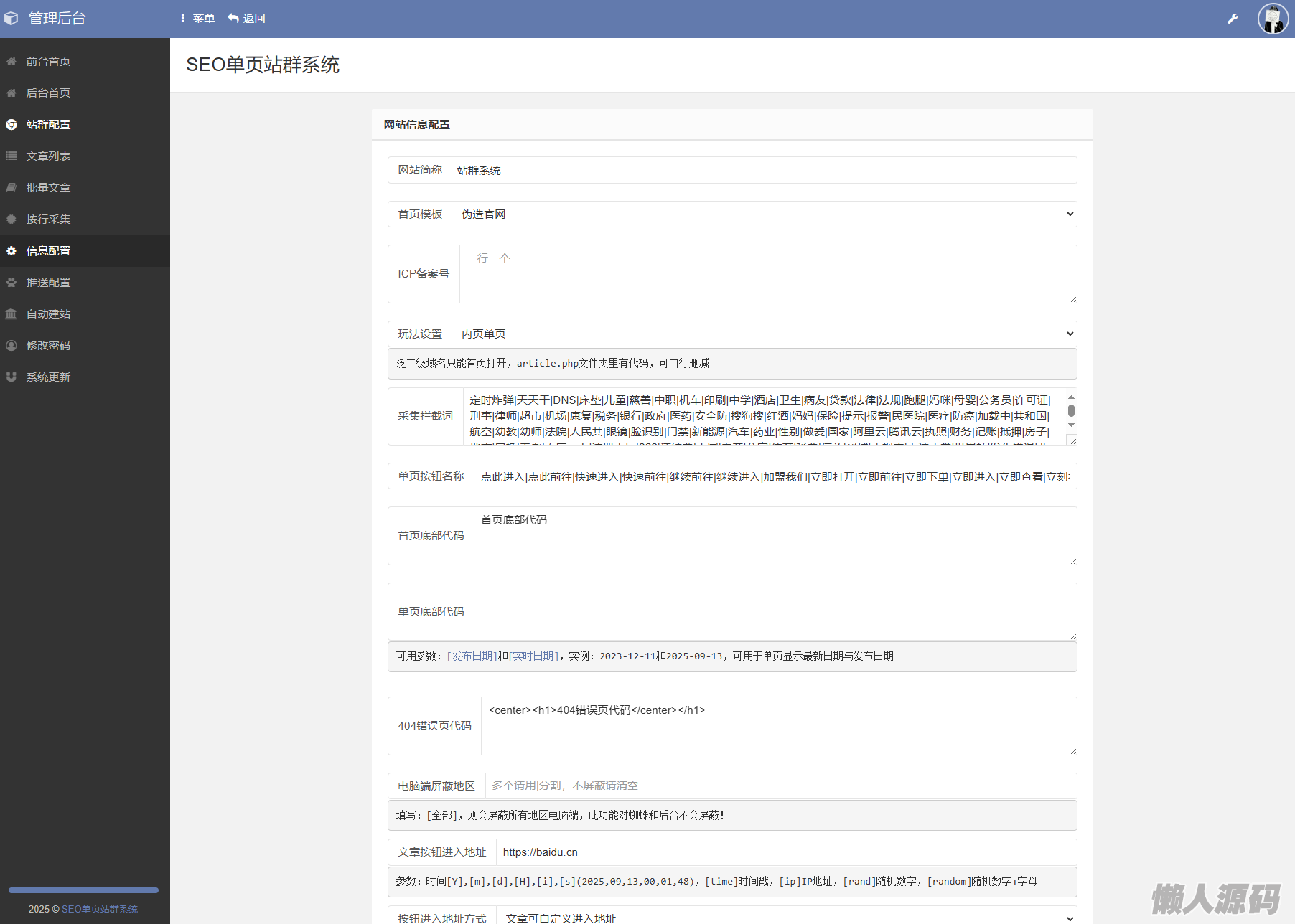 懒人源码 » SEO站群系统源码 免授权版 单页关键词排名网站源码