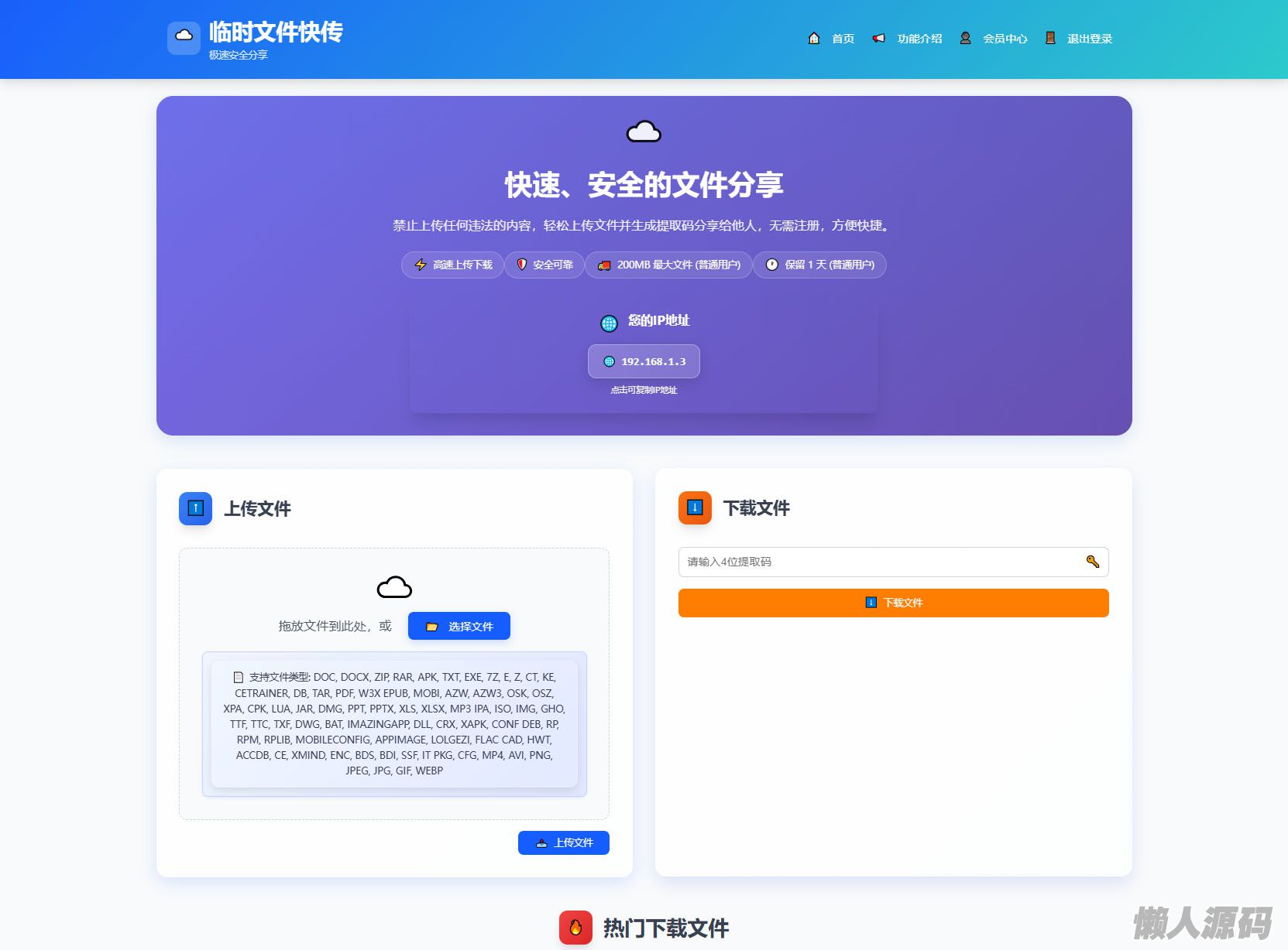 懒人源码 » 9月更新 临时文件快传系统源码 全开源附教程