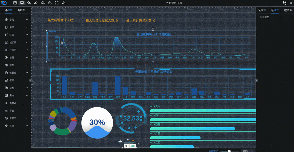 懒人源码 » 可视化大屏数据展示系统 拖拽生成各种炫酷的大屏