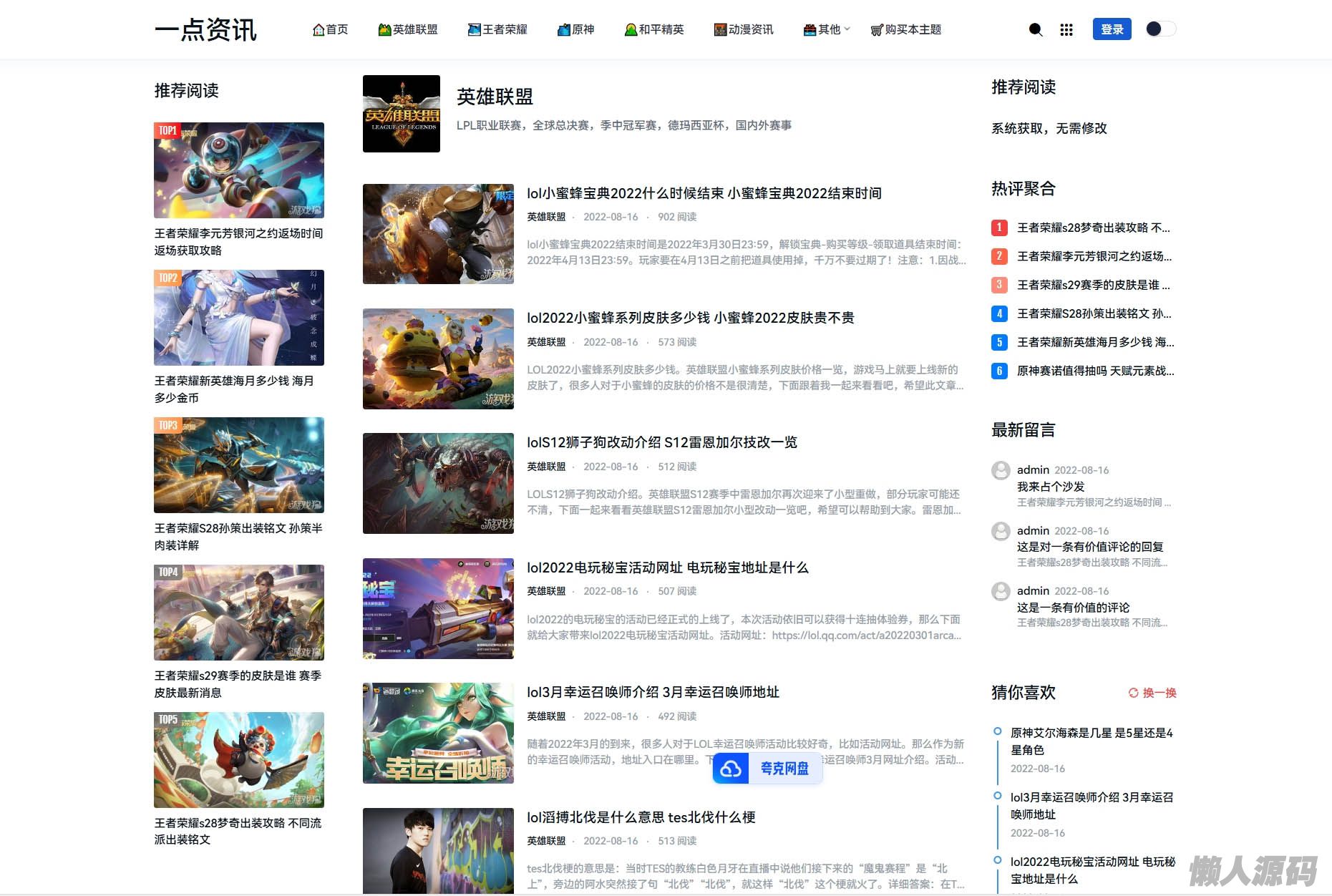 懒人源码 » 游戏攻略新闻资讯主题模板源码 YK一点资讯模版 Zblog主题模版