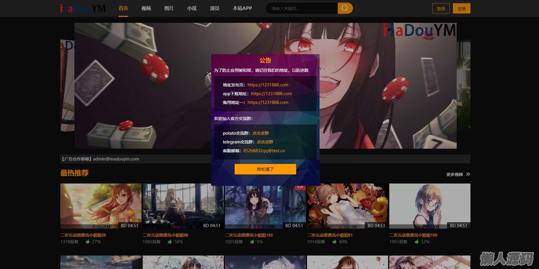 懒人源码 » 鱿鱼视频模板 MDYS12麻豆模板源码 小说网站源码模板